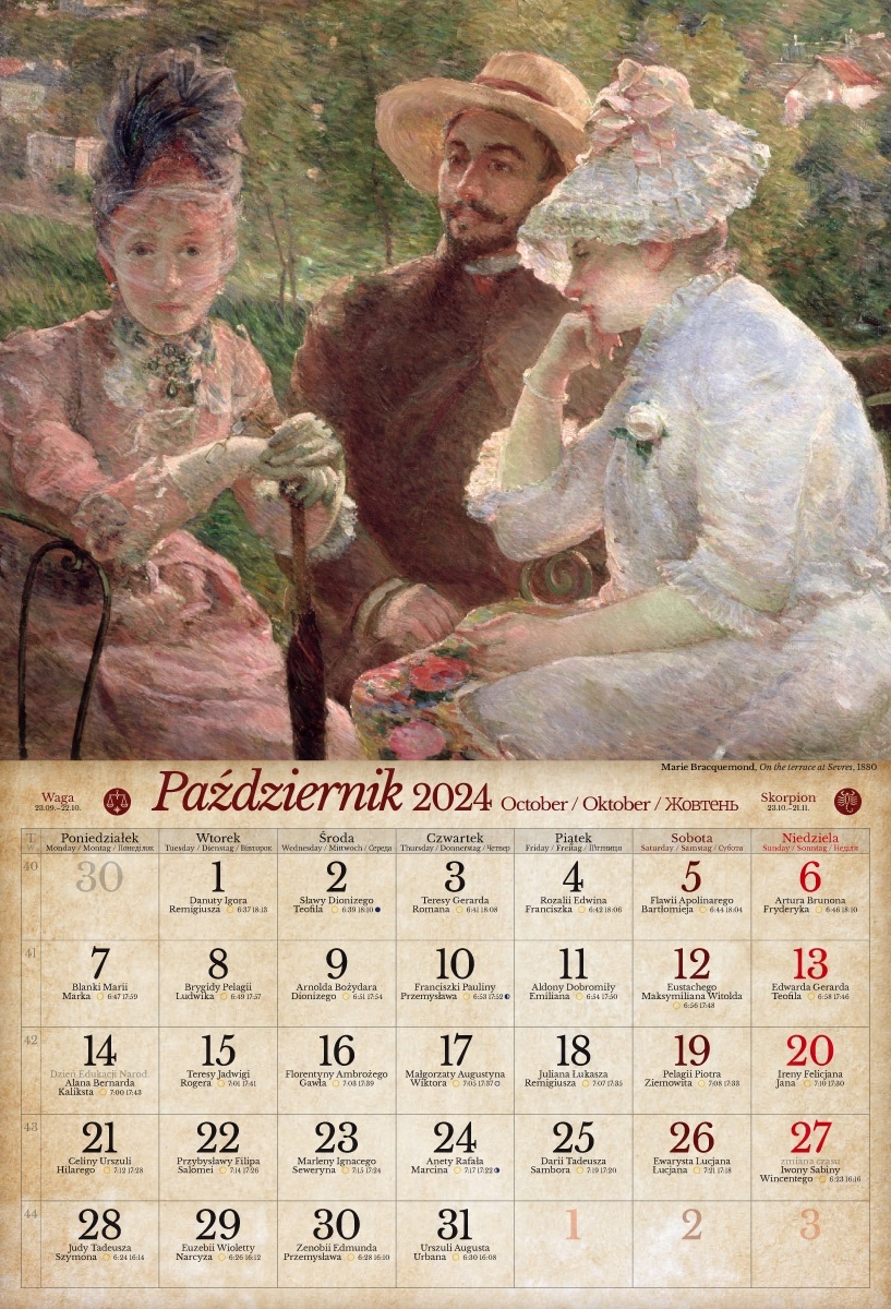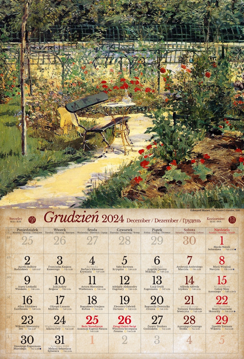 Kalendarz 2024 ścienny planszowy DUŻY 32x47cm MALARSTWO IMPRESJONIZM