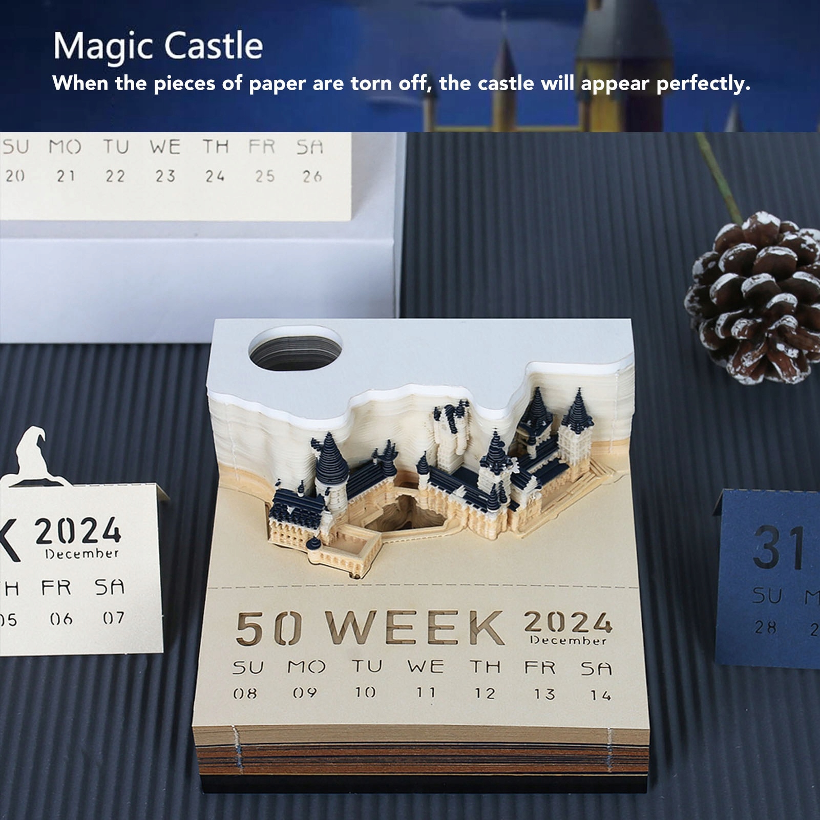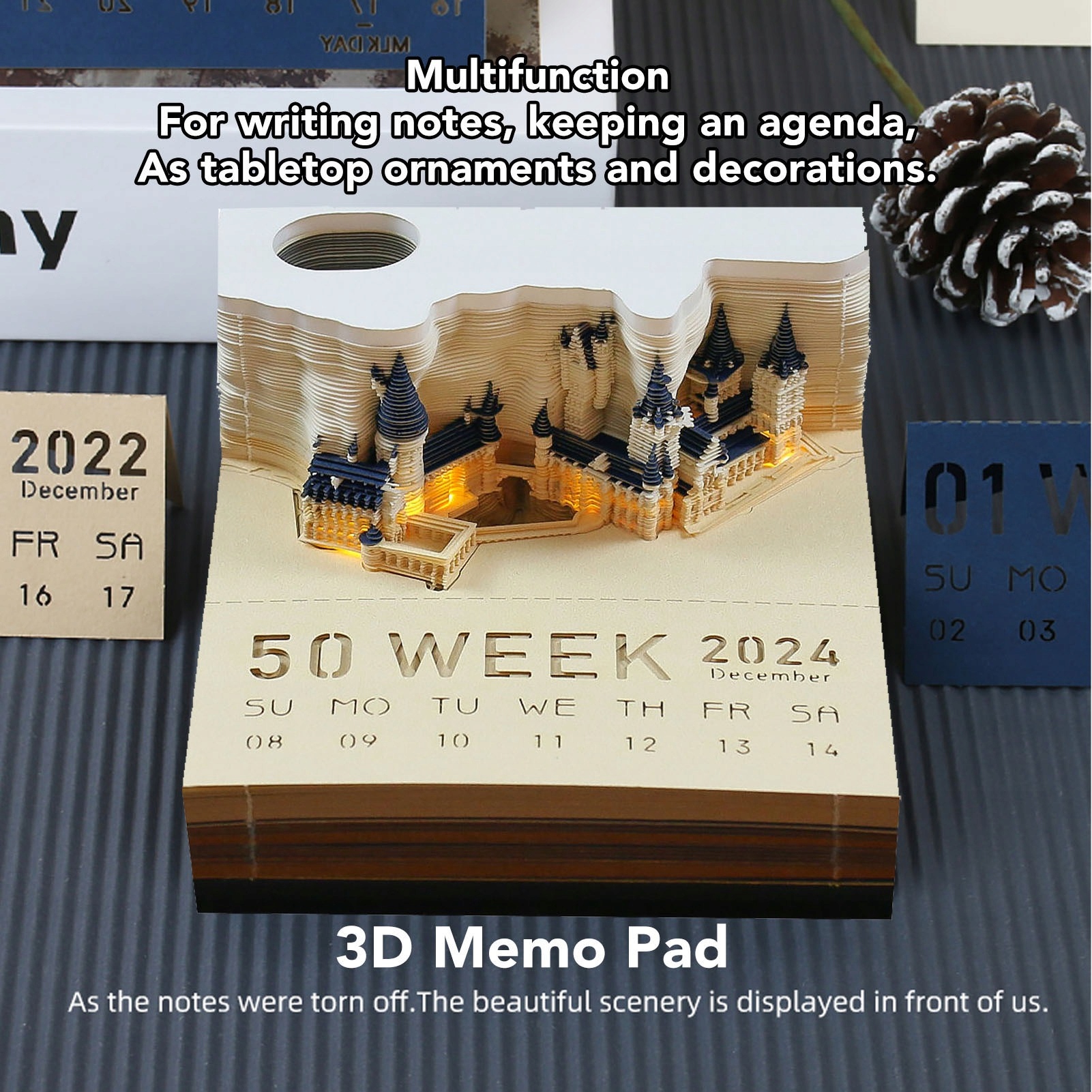 3D Castle Блокнот Многофункциональный календарь Блокнот на 2024 год Удобные наклейки с легким праздничным подарком