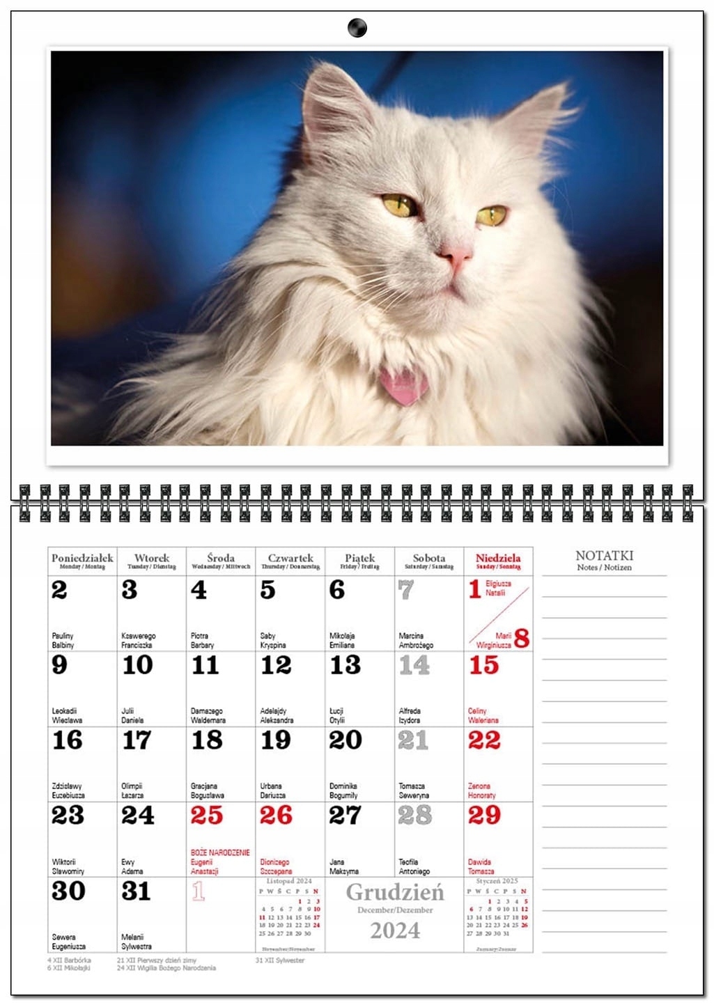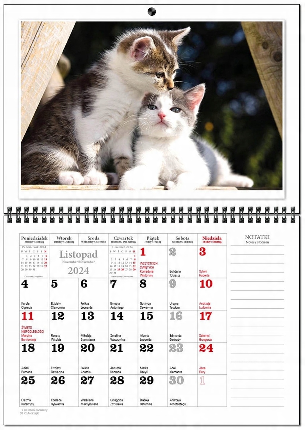 Kalendarz 2024 TERMINARZ ścienny na SPIRALCE 29x41 KOTY