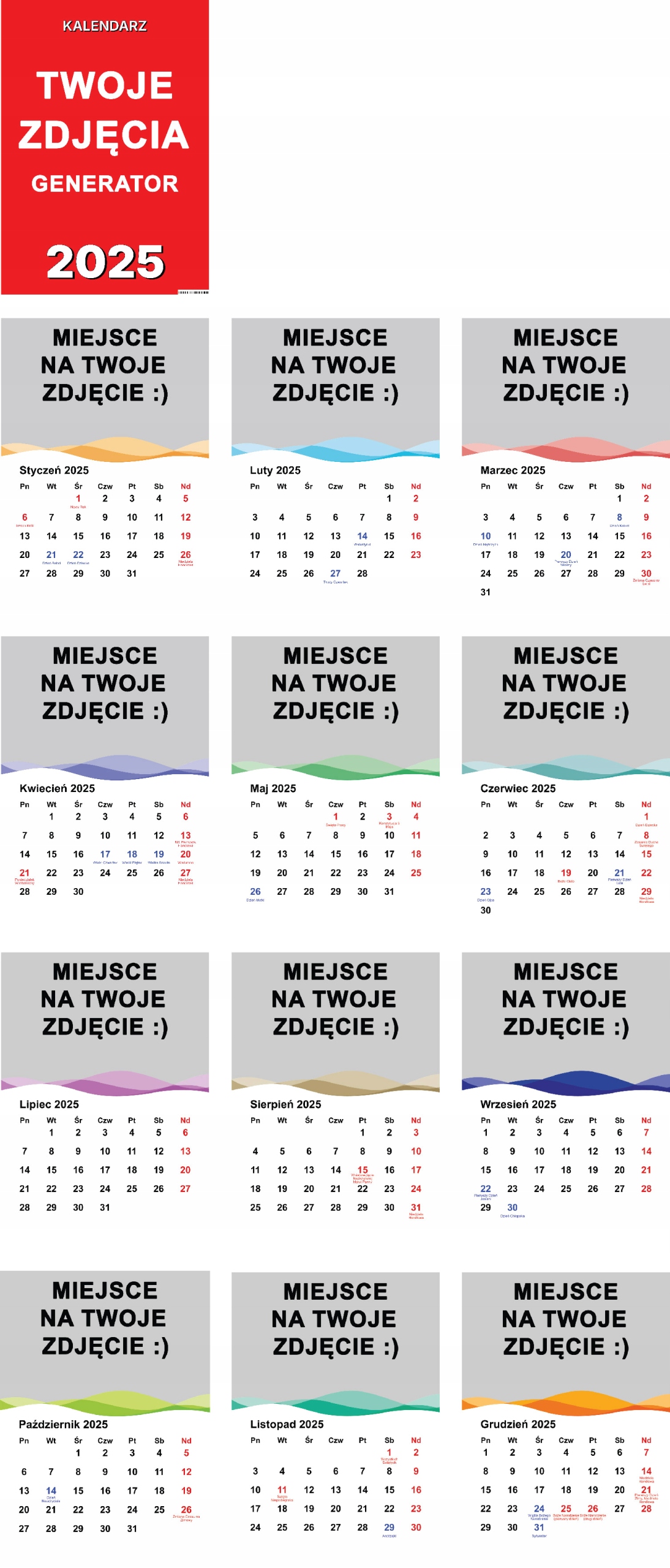 KALENDARZ 2025 A3 13-STRONNY (13 WŁASNYCH ZDJĘĆ) WŁASNE DATY PROSTY KREATOR