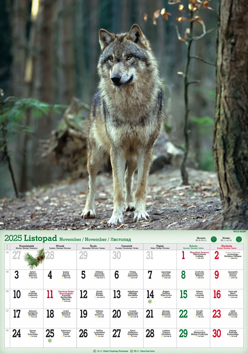 KALENDARZ 2025 ŚCIENNY BARDZO DUŻY 42x60 LESNE UROCZYSKA MIESZKAŃCY PUSZCZY