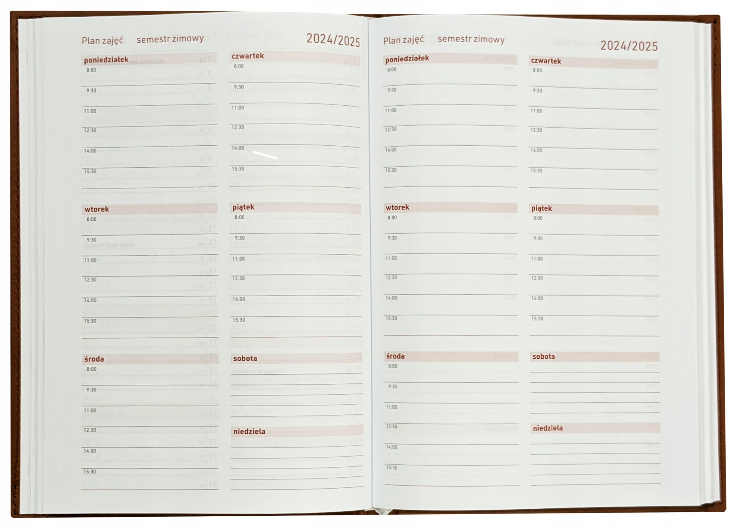 - раскладка:неделя на странице, обратная сторона с тонкой линией – блокнот для любых записей