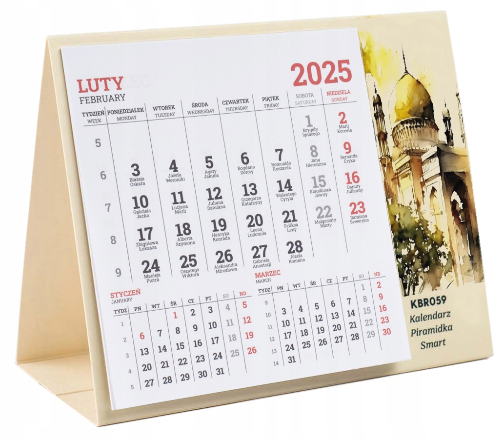KALENDARZ Biurkowy PIRAMIDKA 2025 Twoje LOGO na biurko z NADRUKIEM 25 sztuk