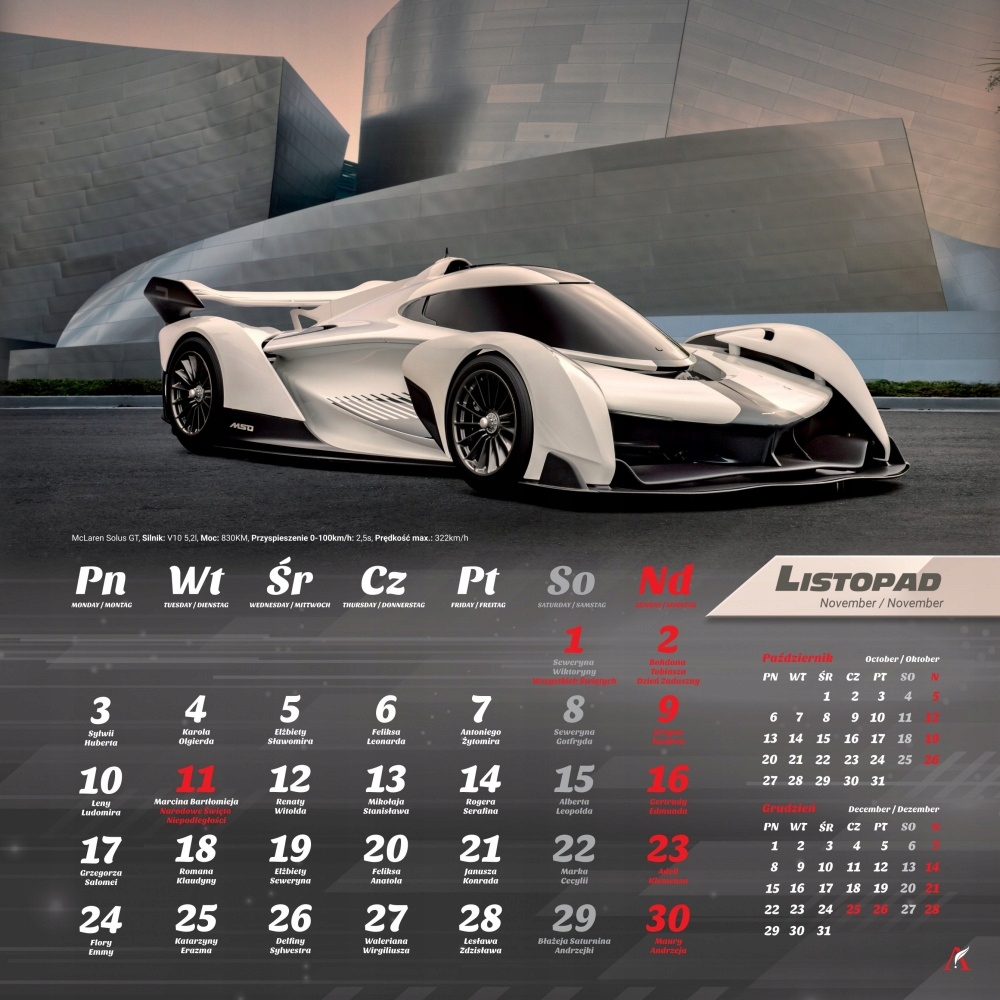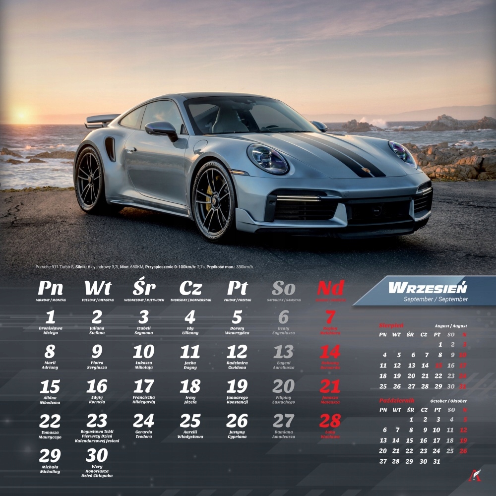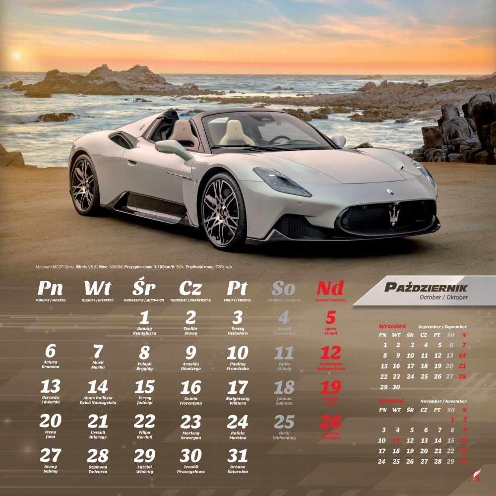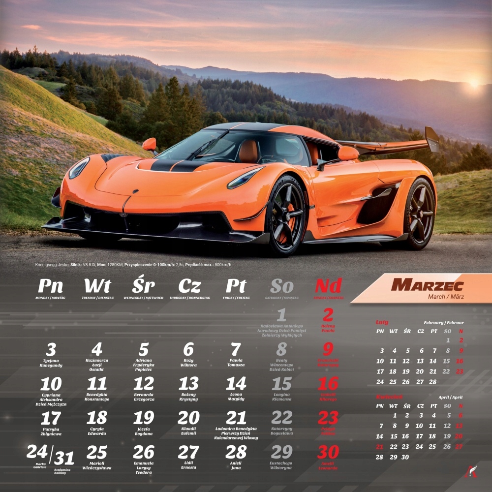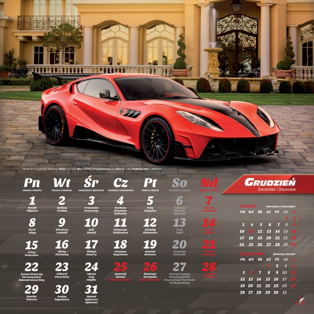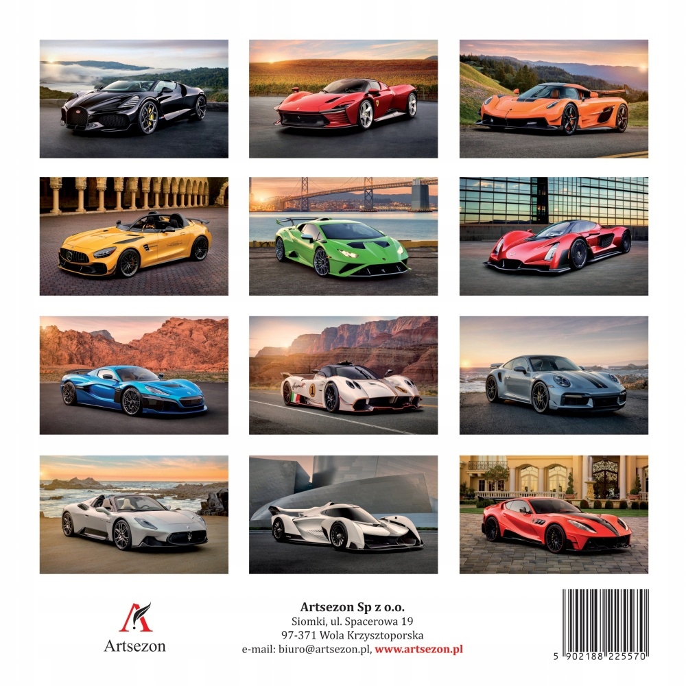 KALENDARZ ŚCIENNY WIELOPLANSZOWY 2025 33x33 CM SAMOCHODY SPORTOWE