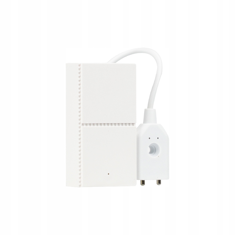 Устройство представляет собой беспроводной датчик затопления, который активируется при обнаружении воды. Датчик подключается к беспроводной системе безопасности на частоте 433МГц, дальность связи до 80м. Датчик работает до 2 лет от аккумулятора и предназначен для интерьеров зданий. Устройство работает только с панелью управления KAL-HC-CWT. Основная часть датчика должна быть установлена на высоте нескольких или десятков сантиметров над полом, а его щуп на кабеле должен касаться пола.