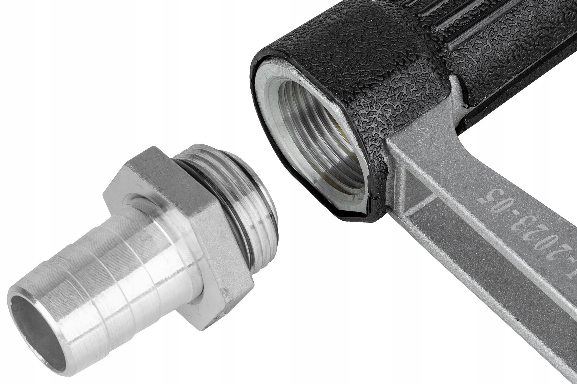 Пистолет имеет двухступенчатый фиксатор спускового крючка и соединение 1 дюйм. Весь узел изготовлен из чрезвычайно прочных и устойчивых материалов, что обеспечивает безаварийную эксплуатацию.