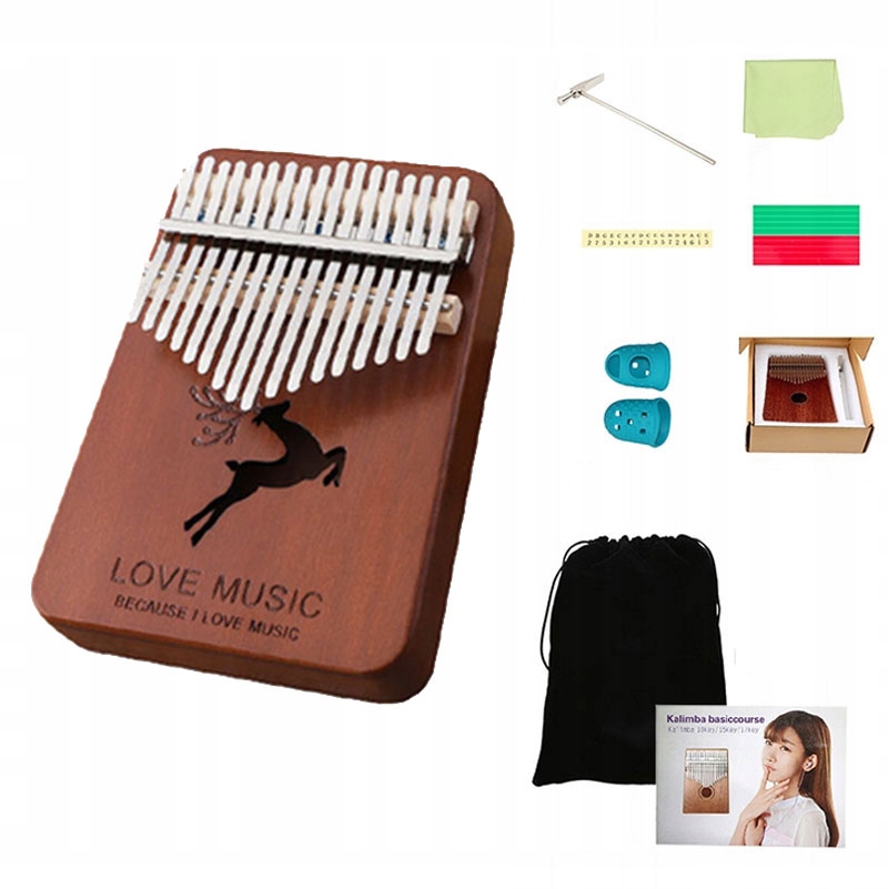 - В комплект входит: Калимба, мешок из волокна, молоток для настройки, накладки на пальцы. наклейки, чистящая салфетка, инструкция, декоративная упаковка.