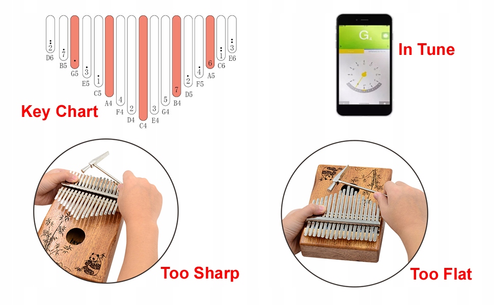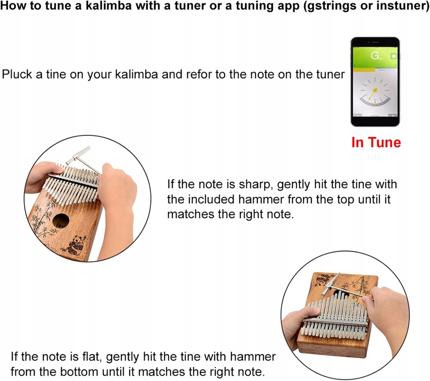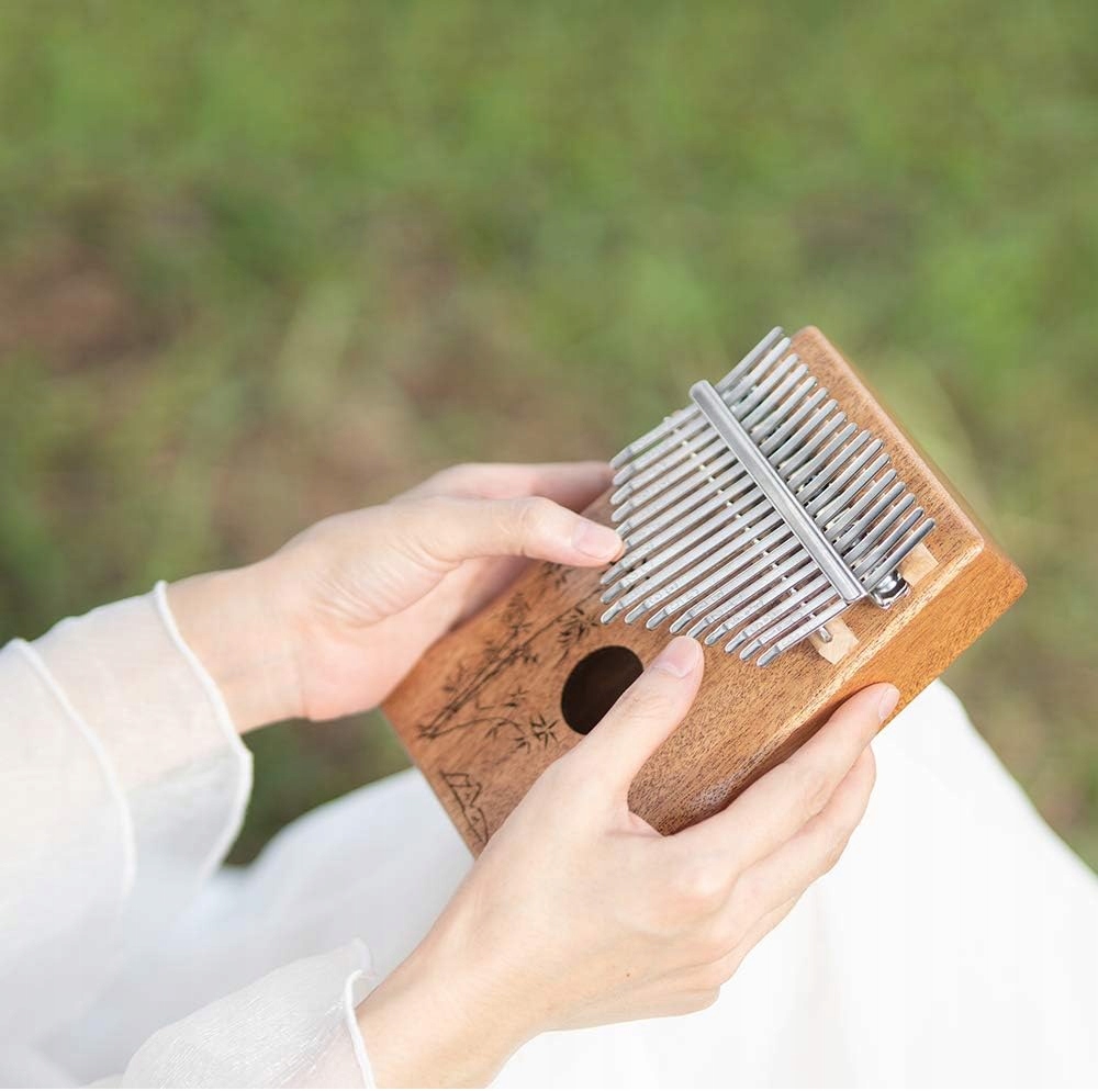 KALIMBA DREWNIANA INSTRUMENT AFRYKAŃSKI MUZYCZNY PIANINO 17 klawiszy ZESTAW