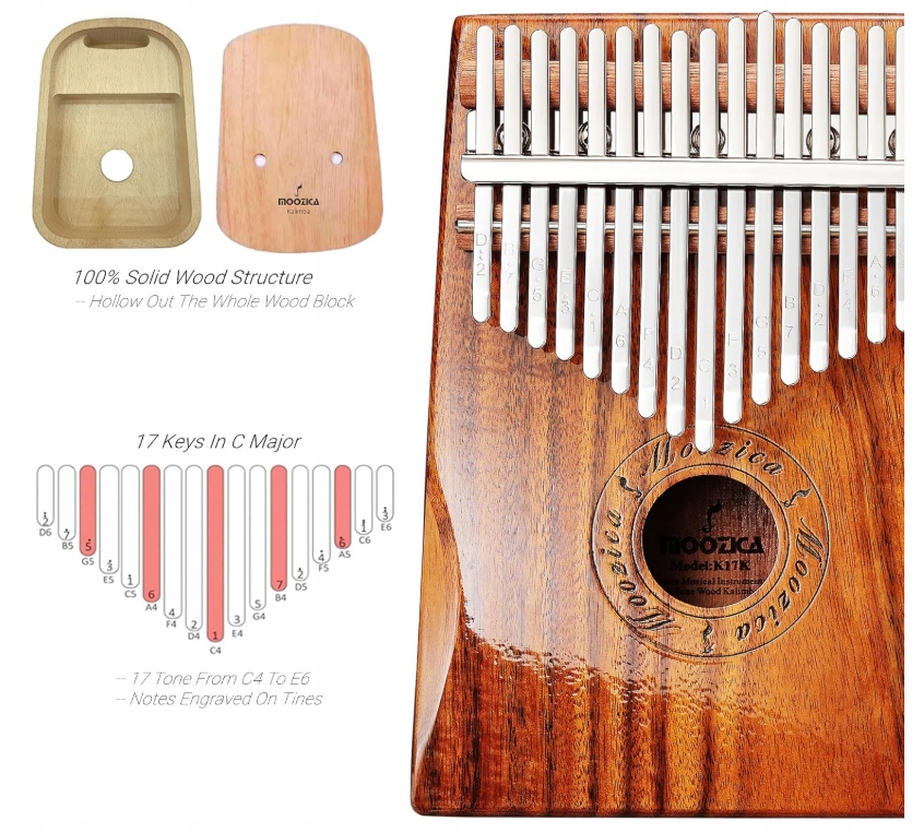 MOOZICA KALIMBA 17 KEYS ПРОФЕССИОНАЛЬНАЯ МАРИМБА С ДЕРЕВЯННОЙ ОТДЕЛКОЙ