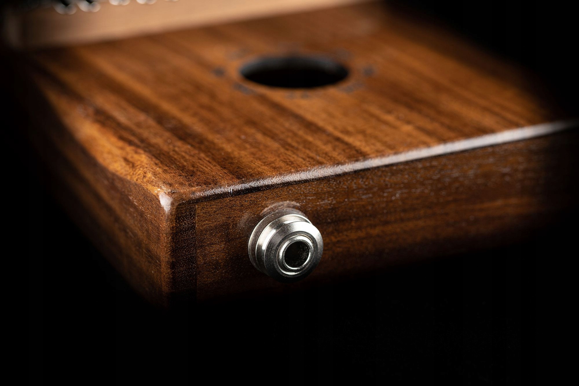 переднее звуковое отверстие, позволяющее создавать пульсирующий эффект «вау-вау», когда вы держите инструмент прижатым к телу.