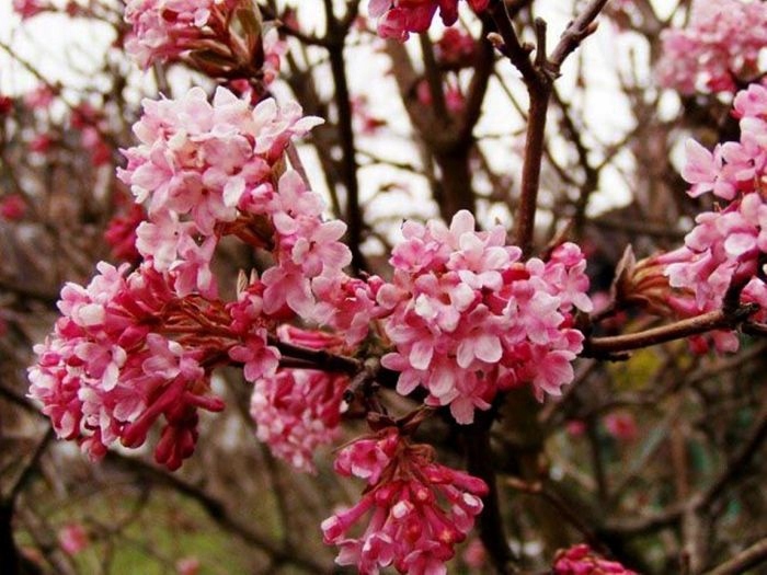 Брук первоначально выпрямлен, с возрастом и более широким, с распределенными и арочными ветвями. Высота и ширина 2,5 м. Lancete, зеленые листья, красные или красные виолеты осенью. Руководство марта и апреля - это период цветения боднантианской Калины «рассвет». Очень многочисленные, розовые, трубчатые цветы сосредоточены на соцветиях в форме головы. Цветы в бутоне темно -розовые, после развития они становятся белыми и розовыми. Рядом с чарами это одно из первых древесных растений, начинающих цветение в начале ранней весны. Кустарник характеризуется сильно ароматными розовыми цветами, поэтому растения должны быть посажены в домашних садах, на тропинках или переходах, которые мы часто используем. Растения не сложно вырастить, они предпочитают питательные вещества и умеренно влажные почвы. Кустарники Калины Боднантки должны быть посажены в теплых, солнечных местах или полуспеченных.
