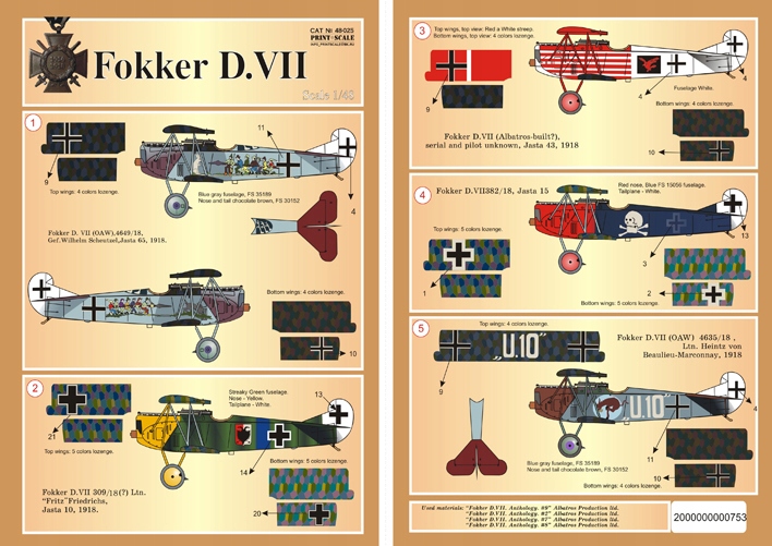 Калька Печатна шкала 48025 Fokker D.VII Частина 1 1:48