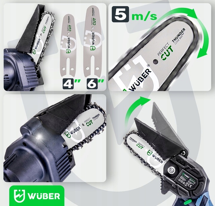 ✅ резкую цепь - сделанные из самых жестких металлических сплавов, устойчивых к ищущению и температуре, создаваемой во время работы с пилой. В течение долгого времени остается резким и не требует частых батарей и замены.