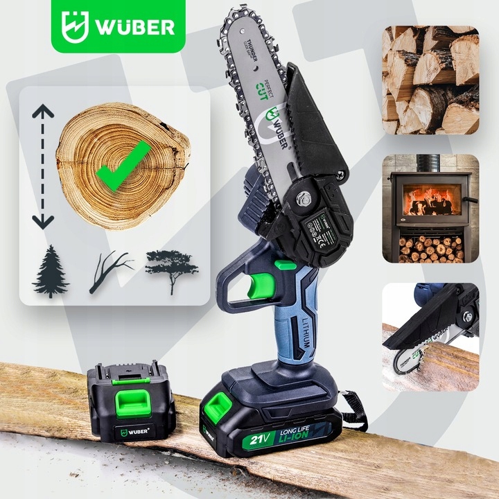 , когда пила входит в материал . Цепь ускоряется до скорости 5 м/с , что позволяет вам эффективно и точно сокращать древесину⭐ Две батареи с емкостью 2,0 ах + зарядного устройства