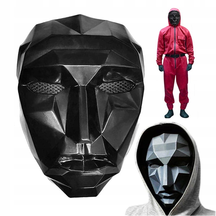 Идеальное дополнение к фанатам знаковой корейской серии! Дизайн вдохновил серию - маска в стиле охранников из популярного корейского хита. Черный фон с характерным отпечатками белого квадрата, который привлекает внимание и добавляет подлинность.