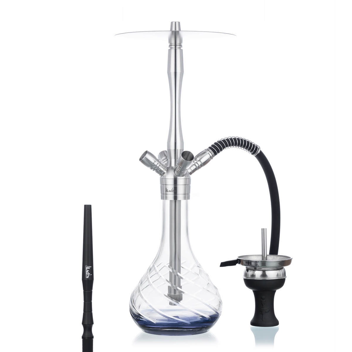 Кальян ALADIN MVP 480 — компактная модель с высоким качеством изготовления, сочетающая нержавеющую сталь с элегантной стеклянной основой синего цвета (Blue Bottom).