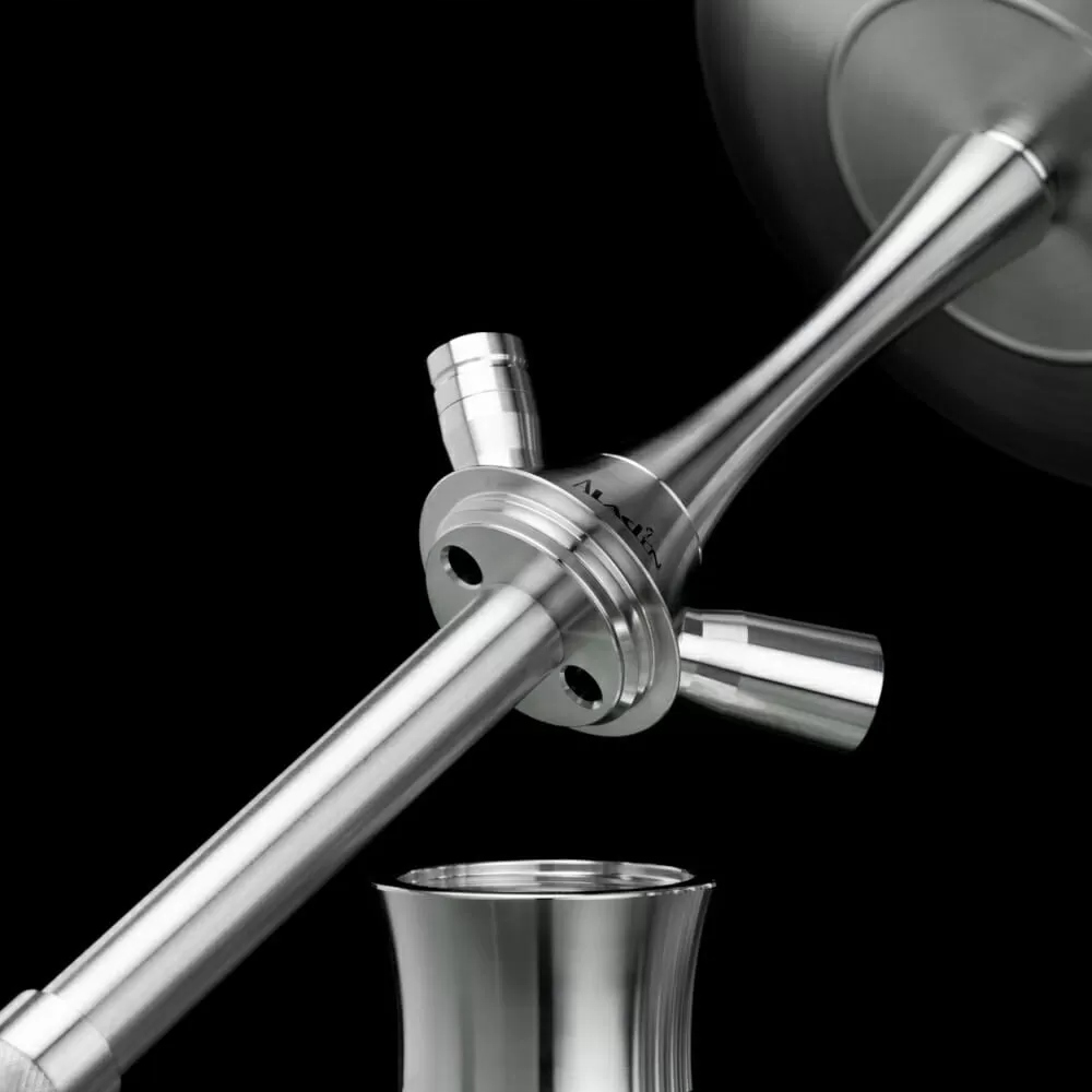 — Готова к использованию — Покупателям трубки Aladin MVP A46 не придется искать необходимые детали и аксессуары, ведь в комплект входят все необходимые элементы. Помимо основных компонентов — силиконового шланга и глиняной чаши — в комплект входит пружина, придающая шлангу жесткость для улучшения потока дыма, а также щипцы для удобного перемещения углей. Это не конец, ведь используемый в кальянах универсальный помол 18,8 позволяет установить ловушку для патоки.