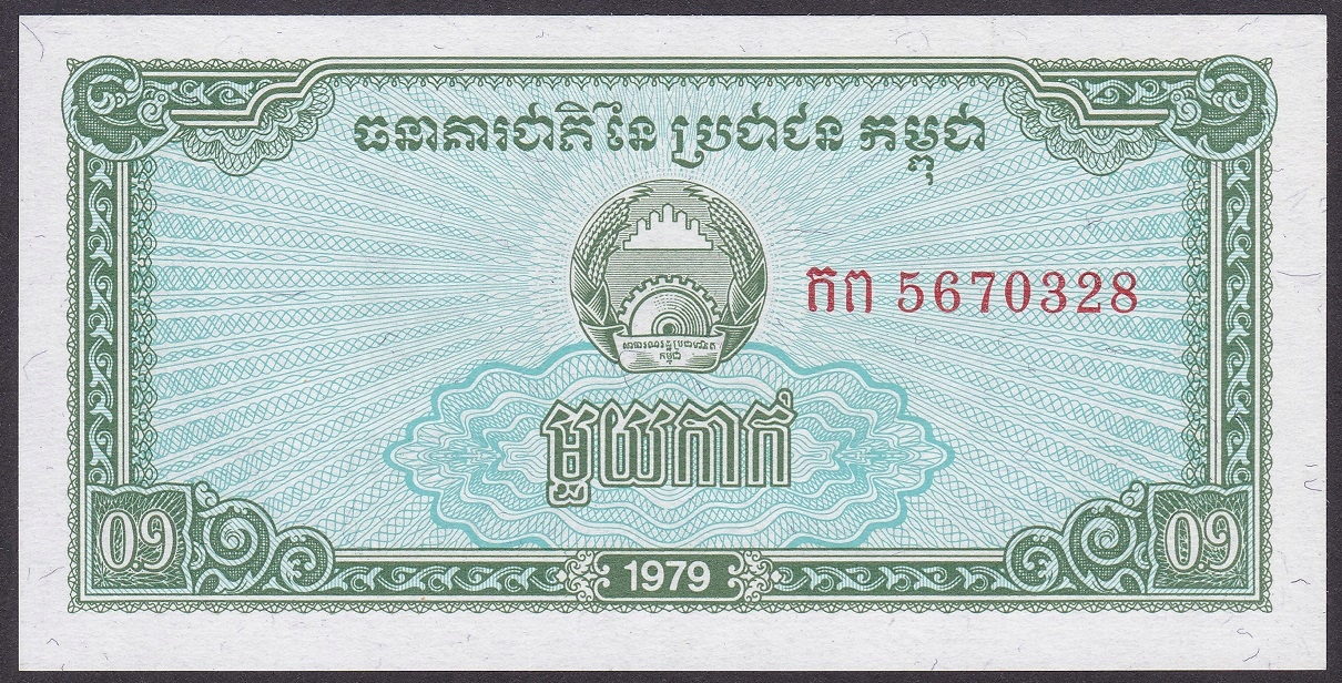 KAMBODŻA 0,1 Riel (1 Kak) 1979 P.25a UNC