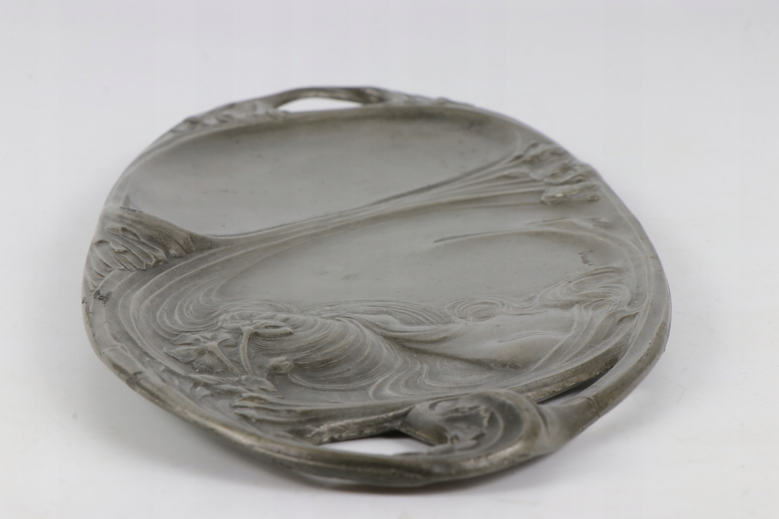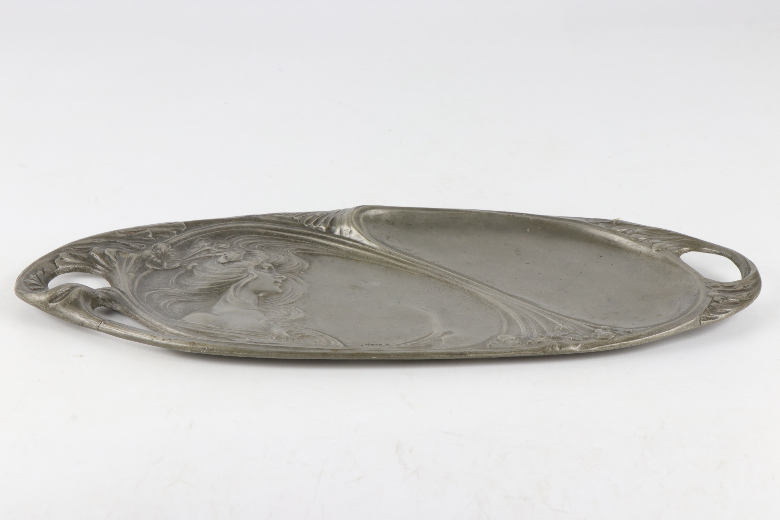 Визитница, отлитая из жести, с подписью Ф. Марго. Визитница, украшенная рельефным изображением красиво вылепленной головы молодой женщины в окружении цветов.