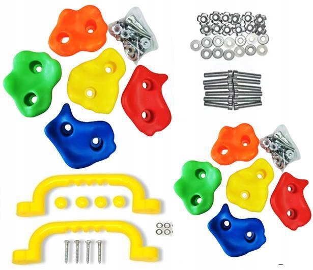 Разноцветные камни для лазания по скалодрому 10 шт + 2 ручки. Полный набор.