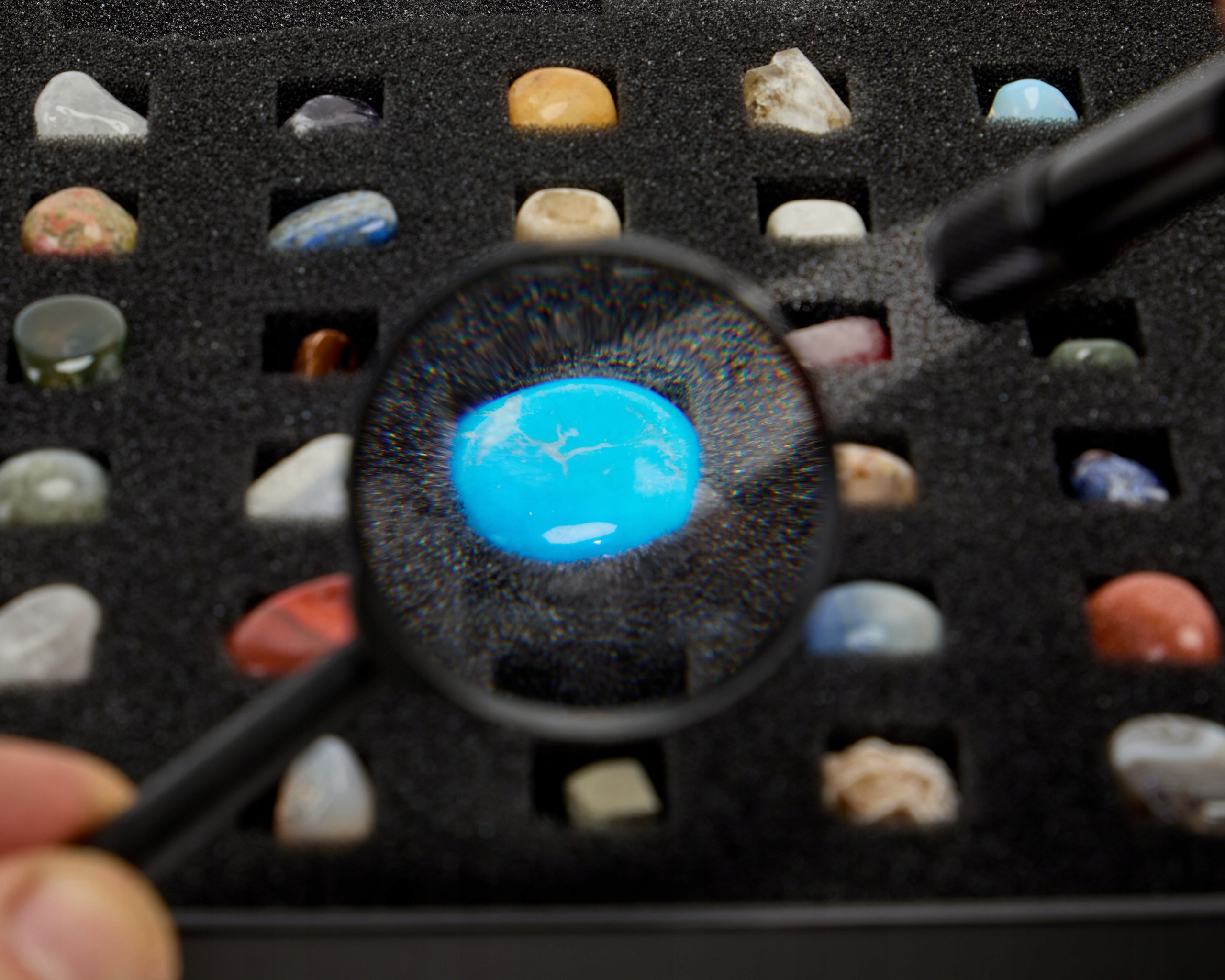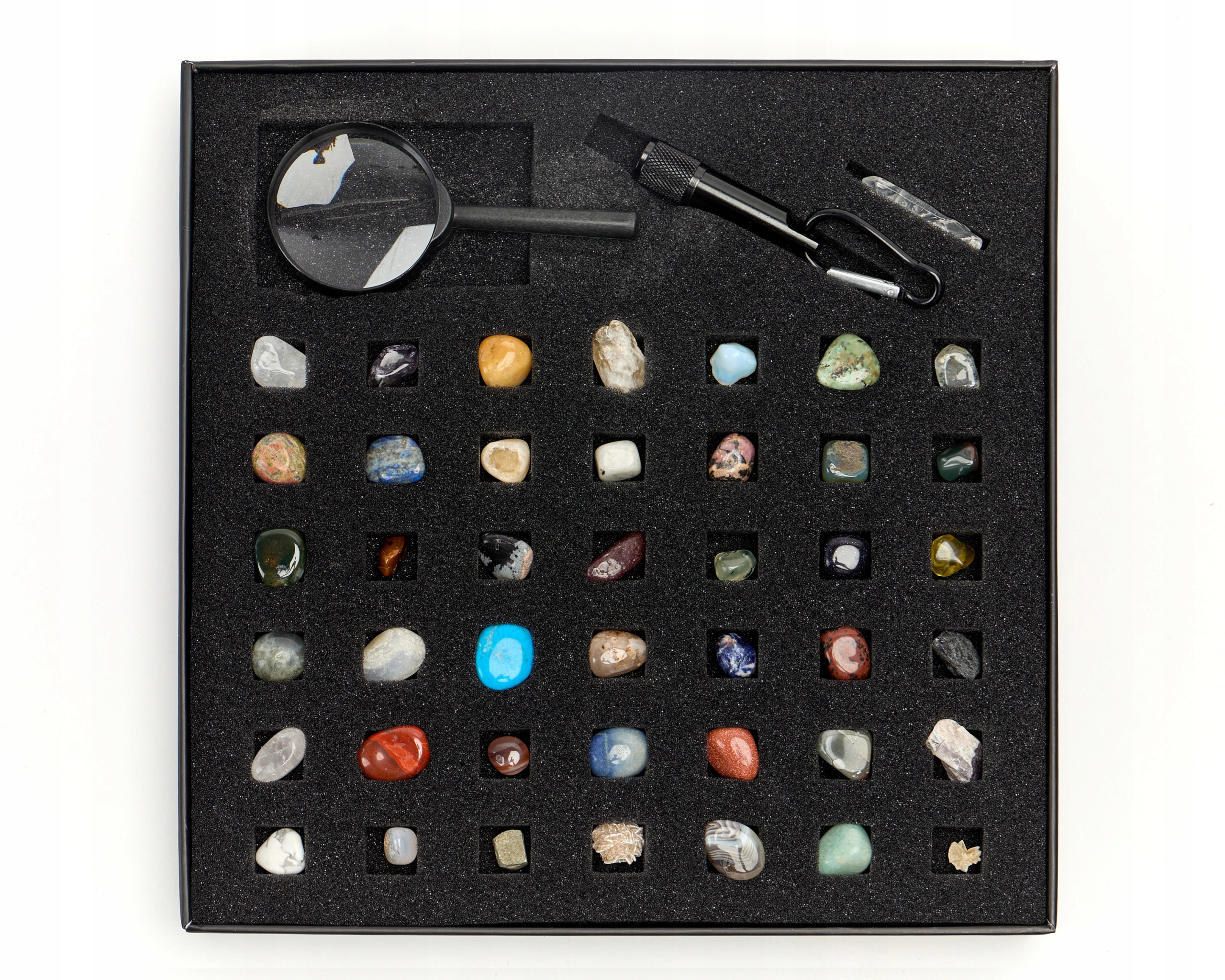 Коллекционер набор камней натуральных и синтетических минералов. Набор из 43 камней, включенных в набор Lupa, фонарик, Leaflet pl h1>