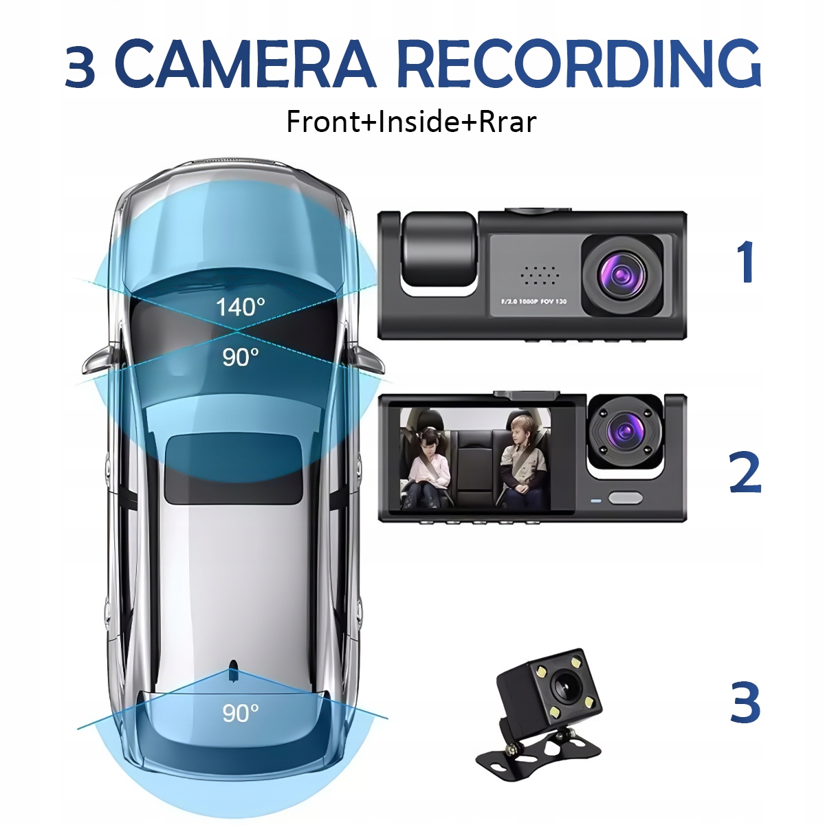 ✅ Основная запись: видео -видео -видео с камерой в высоком разрешении 1080p на передней, внутренней и задней части транспортного средства одновременно, обеспечивая всеобъемлющий диапазон