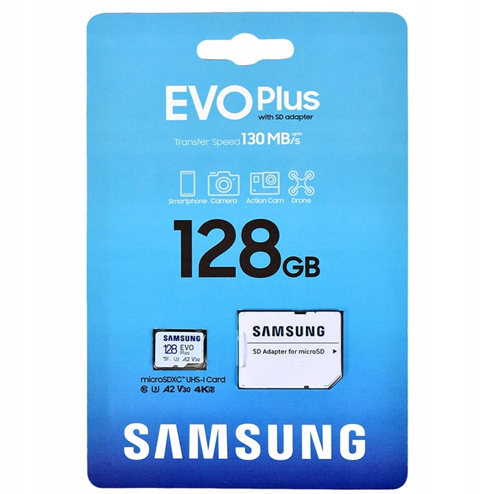 - Карта памяти SAMSUNG EVO+ 128 ГБ, микро SD, 130 МБ/с