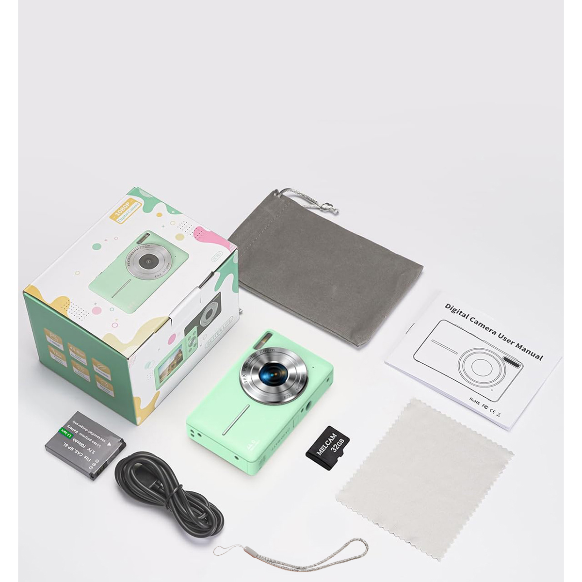 Digital 1080p с картой памяти Micro 32G: благодаря разрешению видео 1080p и до 44 мегапикселей, эта цифровая камера обеспечивает более четкое изображение, чем любая другая камера. Камера для детей также оснащена батареей 700 мАч и картой микро памяти 32 ГБ, так что дети могут запечатлеть любой момент даже во время путешествия.