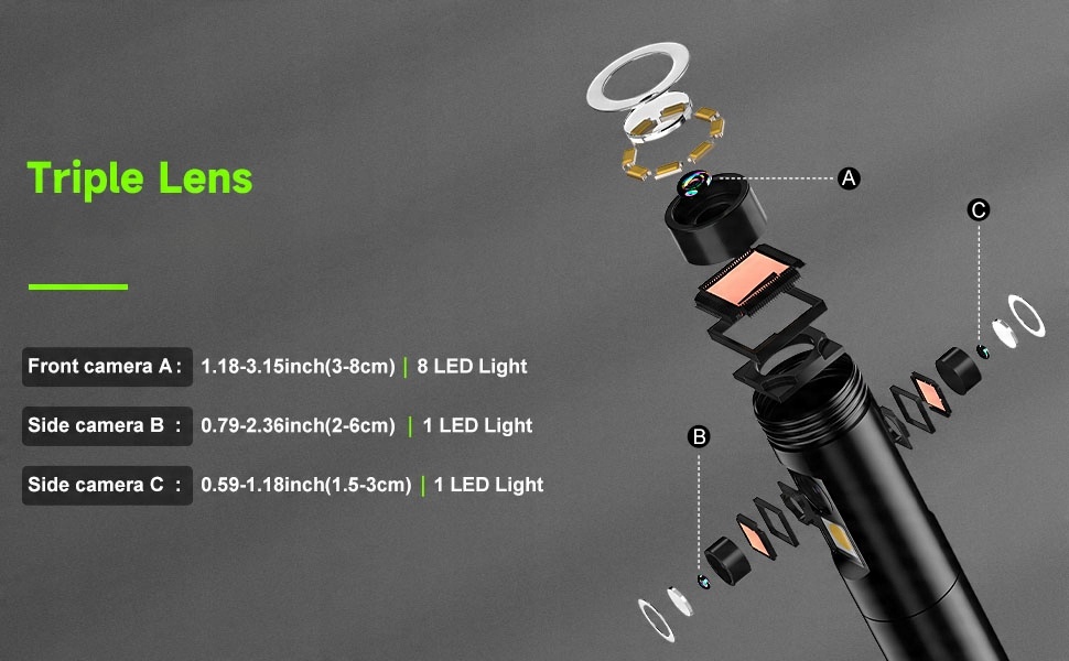 Тройная инспекционная камера ILIHOME поставляется с 10-метровым полужестким кабелем, который подходит для различных проектов. Позволяет легко осматривать водостоки, автомобильные двигатели, стеновые конструкции, системы вентиляции и канализации.