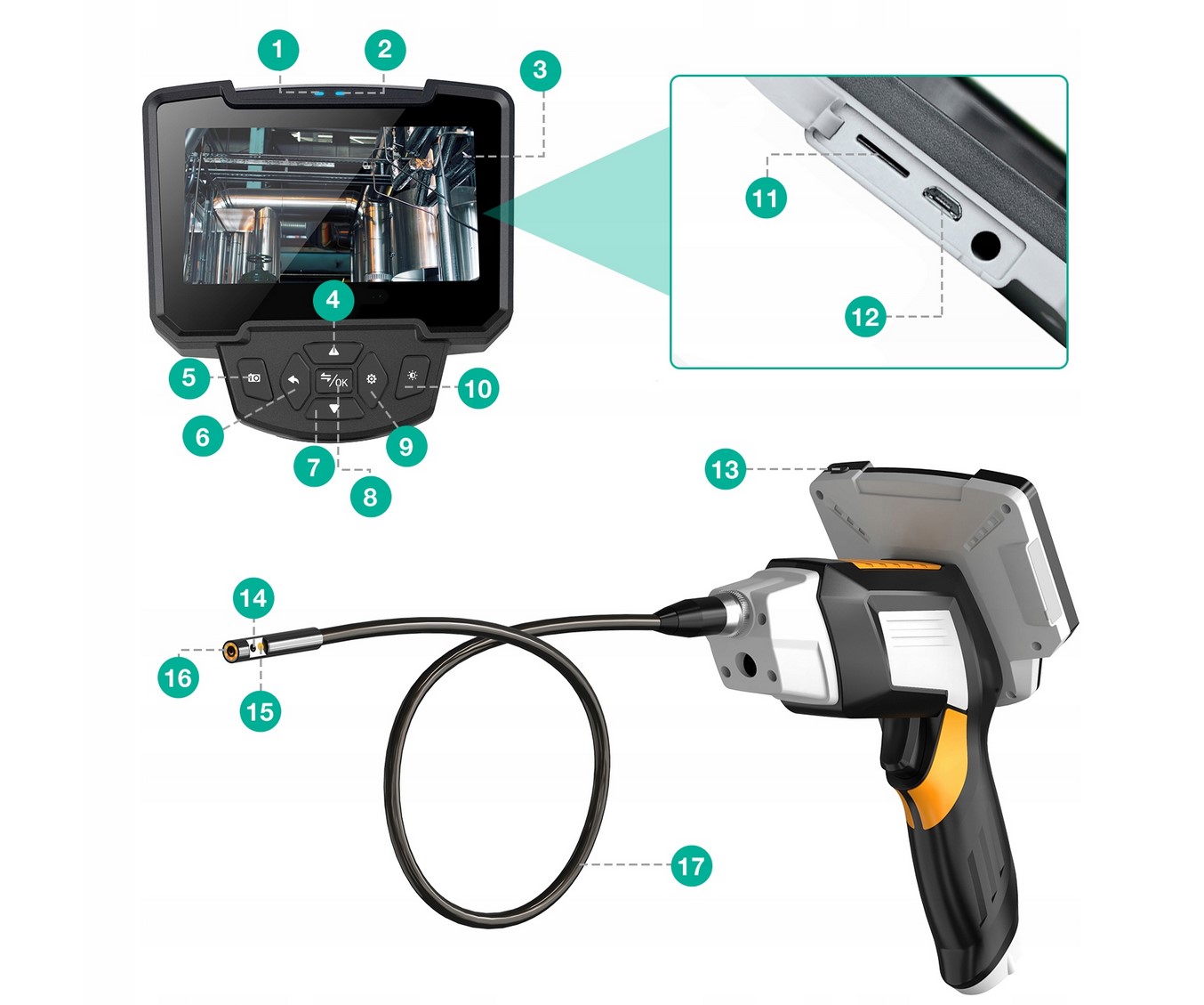 ПРОФЕССИОНАЛЬНАЯ ИНСПЕКЦИОННАЯ КАМЕРА INSKAM 2x 720p HD ЭНДОСКОП С ЭКРАНОМ 4,3 ДЮЙМА ДЛЯ ФОТОГРАФИЙ И ЗАПИСИ ВИДЕО - ПРОФЕССИОНАЛЬНАЯ ВЕРСИЯ 5М с двойной камерой!