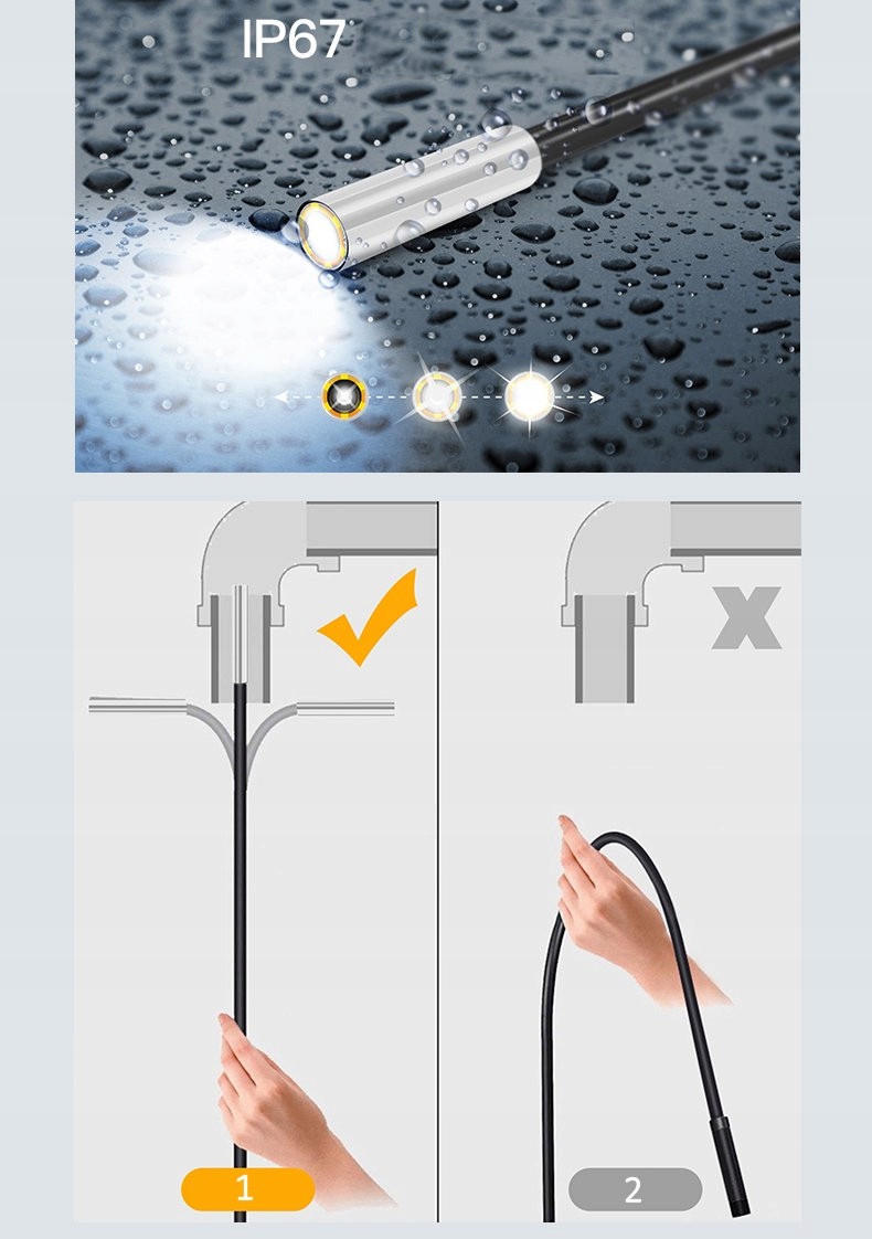Камера уровня IP67 означает, что вы можете ее использовать даже в местах с повышенной влажностью он может легко работать во влажных средах, таких как канализация, бассейны, двигатель, трубы и т. д.