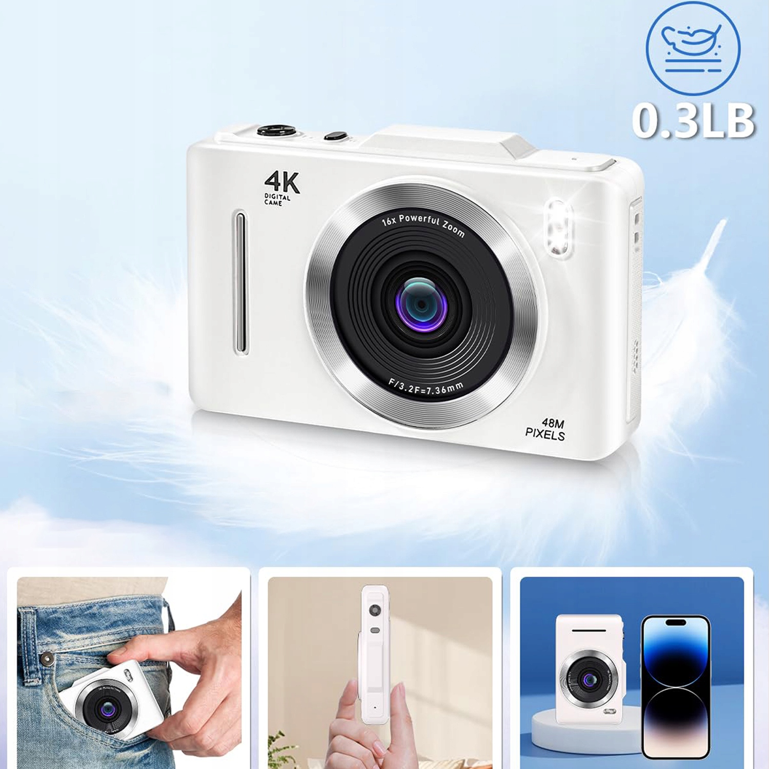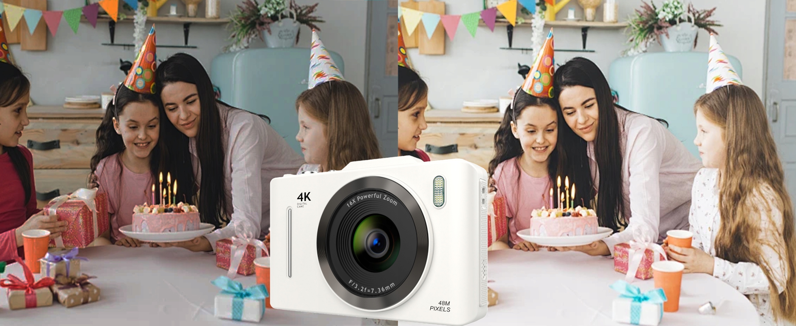 rtain. Цифровая камера использует новейший преобразователь изображений CMOS в 2024 и 5-осе стабилизации, чтобы обеспечить четкие фильмы Full HD 1080p и 48 Мп. В макро -режиме вы можете четко сфотографировать цветы, растения или небольших насекомых. Там нет сложных настройки, и дети и подростки могут легко справиться с этим, что очень подходит для развития их интереса к фотографии и регистрации счастливых моментов на вечеринках, праздничных поездках и всех небольших приключениях.