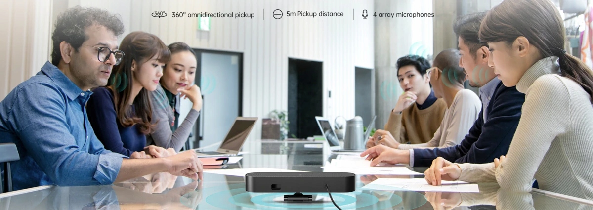 Камера для видеоконференций имеет встроенные 4 высокоточных цифровых микрофона, основанных на алгоритме формирования луча, которые делают звук во время встречи четким и ясным.