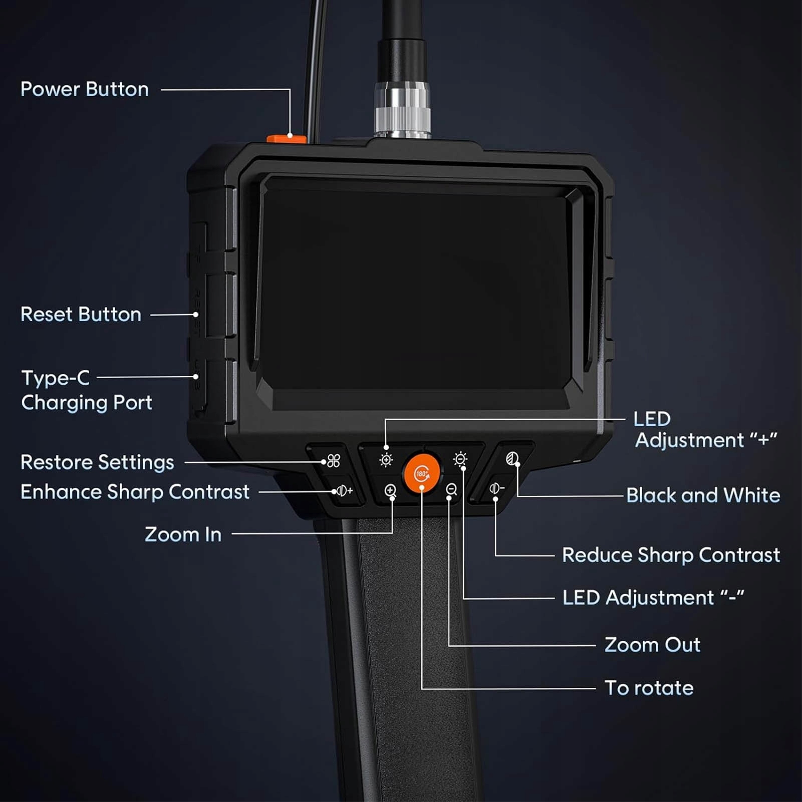 2. 4,3-дюймовый IPS-экран: этот эндоскоп оснащен 4,3-дюймовым IPS-экраном и 8-миллиметровой инспекционной камерой, позволяющей четко видеть, что снимает эндоскоп.