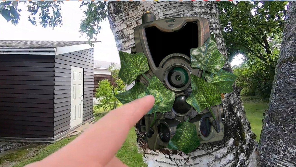 Благодаря листьям на корпусе фотоловушки камера идеально сливается с окружающей средой. При установке фотоловушки следите за тем, чтобы листья не закрывали объектив и датчики движения. Вы также можете прикрепить к корпусу камеры натуральные листья. Однако помните, что из-за нехватки воды эти листья засыхают и опадают.
