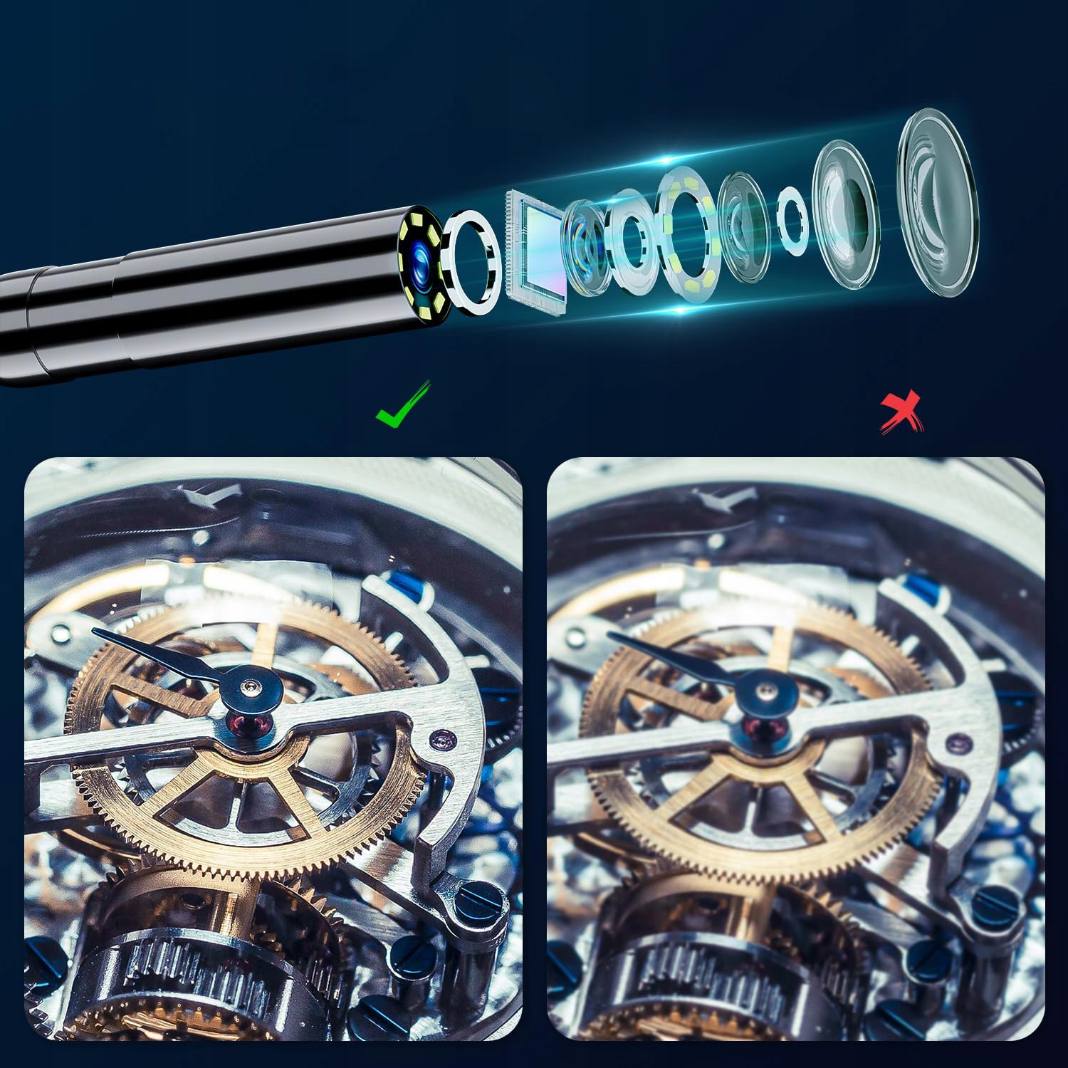 ✅Светодиодное освещение: На конце эндоскопа установлены 8 светодиодных лампочек, которые освещают темное пространство. Эта функция значительно повышает комфорт использования.