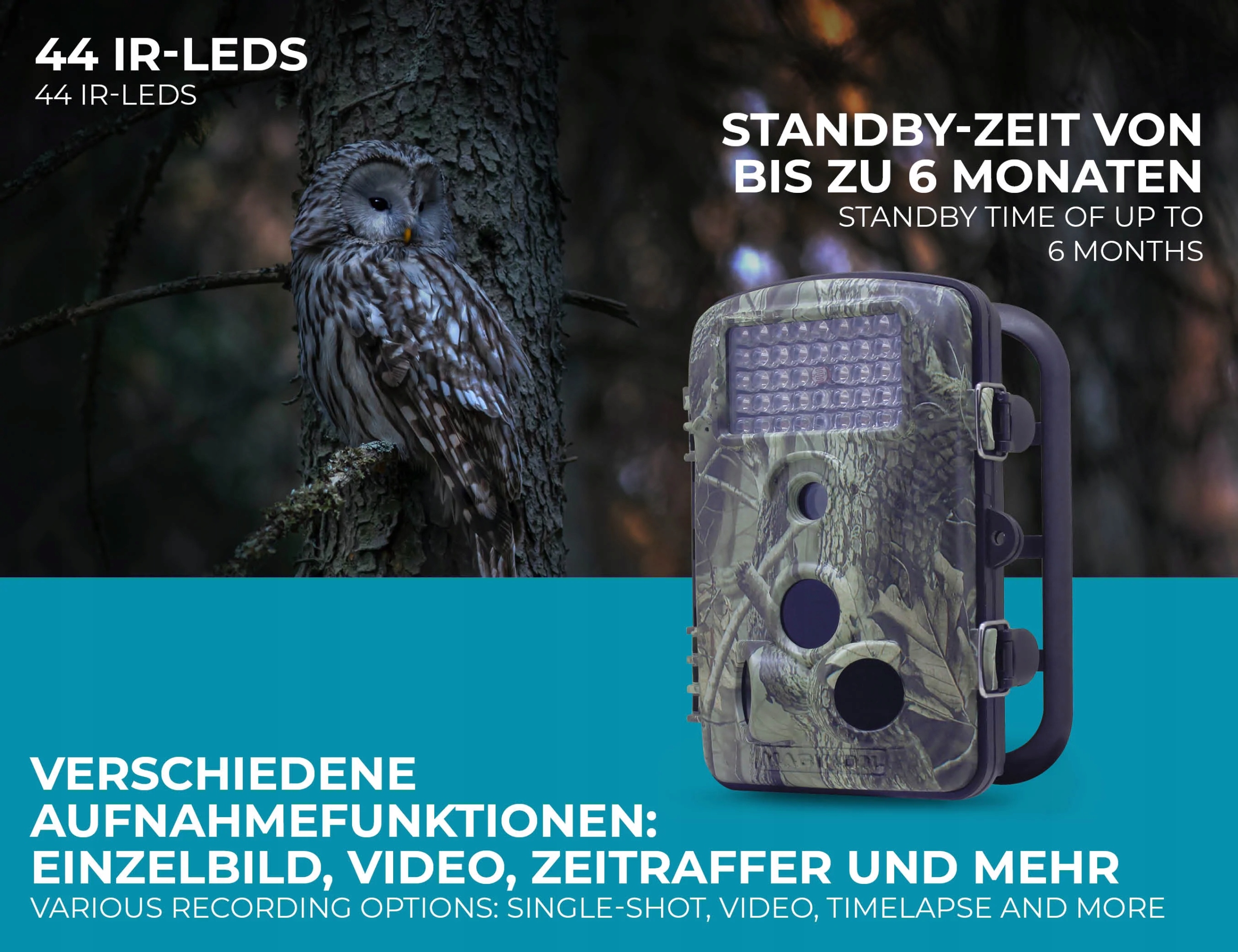 С фотографией -up 30 HD вы получаете дешевую камеру, которую вы можете сфотографировать и видео животных, природы и окружающей среды. Конечно, это не просто гаджет для частных лиц с садом. Но также, например, для охотников и лесников, которые хотят узнать немного точнее, какое животное в настоящее время находится на том, какие пути в этом районе.