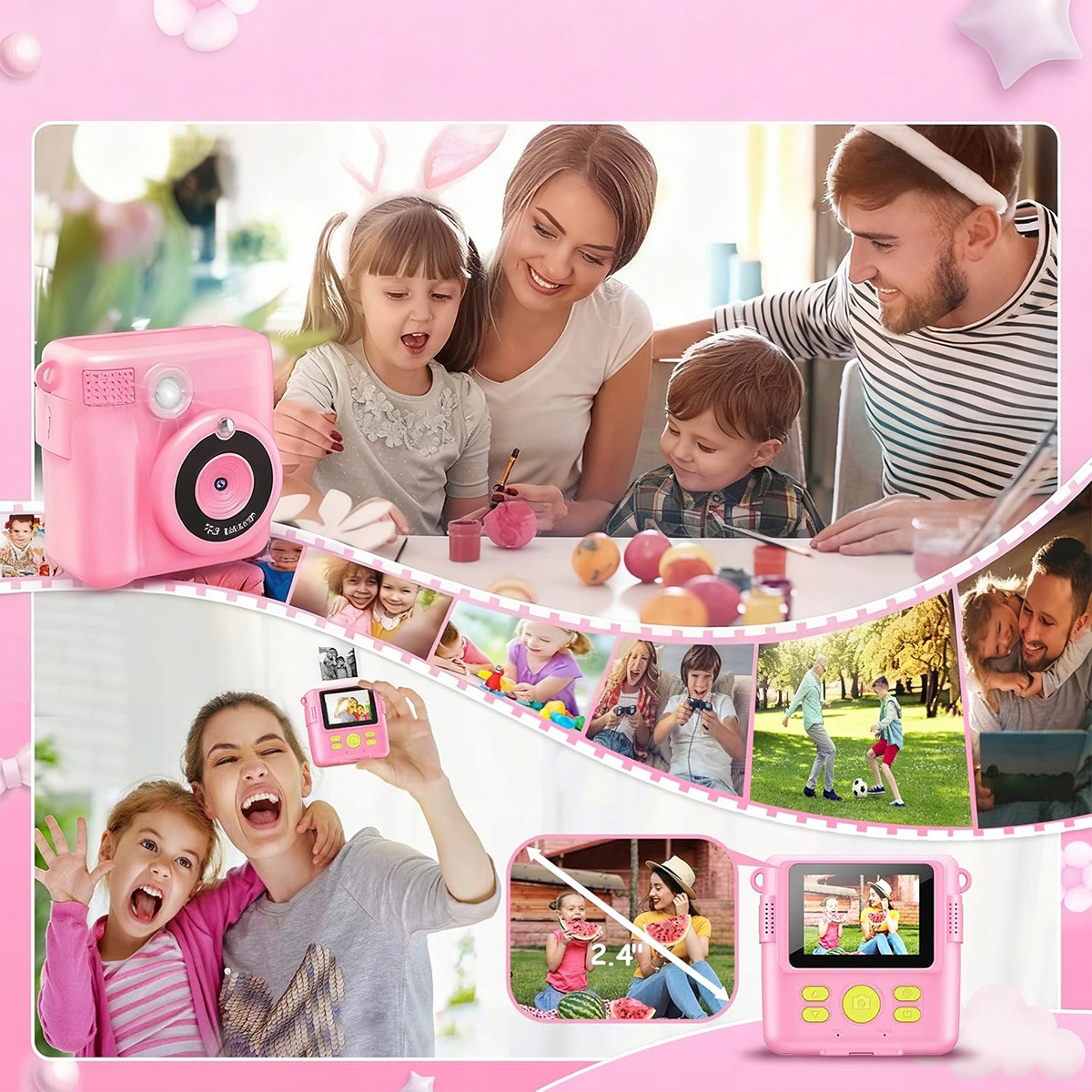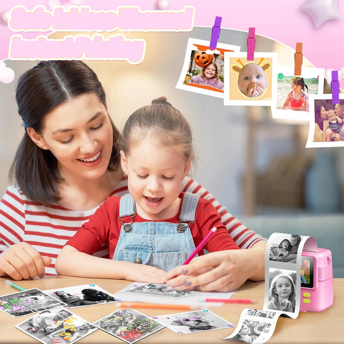 ⭐【Многофункциональная камера для детей】⭐ Камера для мгновенной печати для детей с большим 2,4-дюймовым экраном, микрофоном для аудио- и видеозаписи с возможностью воспроизведения, 4 играми-головоломками, которые помогут детям расслабиться в свободное время, 15 языков на выбор, захват фотографий, печать во время съемки, запись видео, медиатека, MP3-плеер, функция рассказывания историй и другие полезные функции (отложенная съемка фотографий, автоматическое выключение, заставка, и т. д.).
