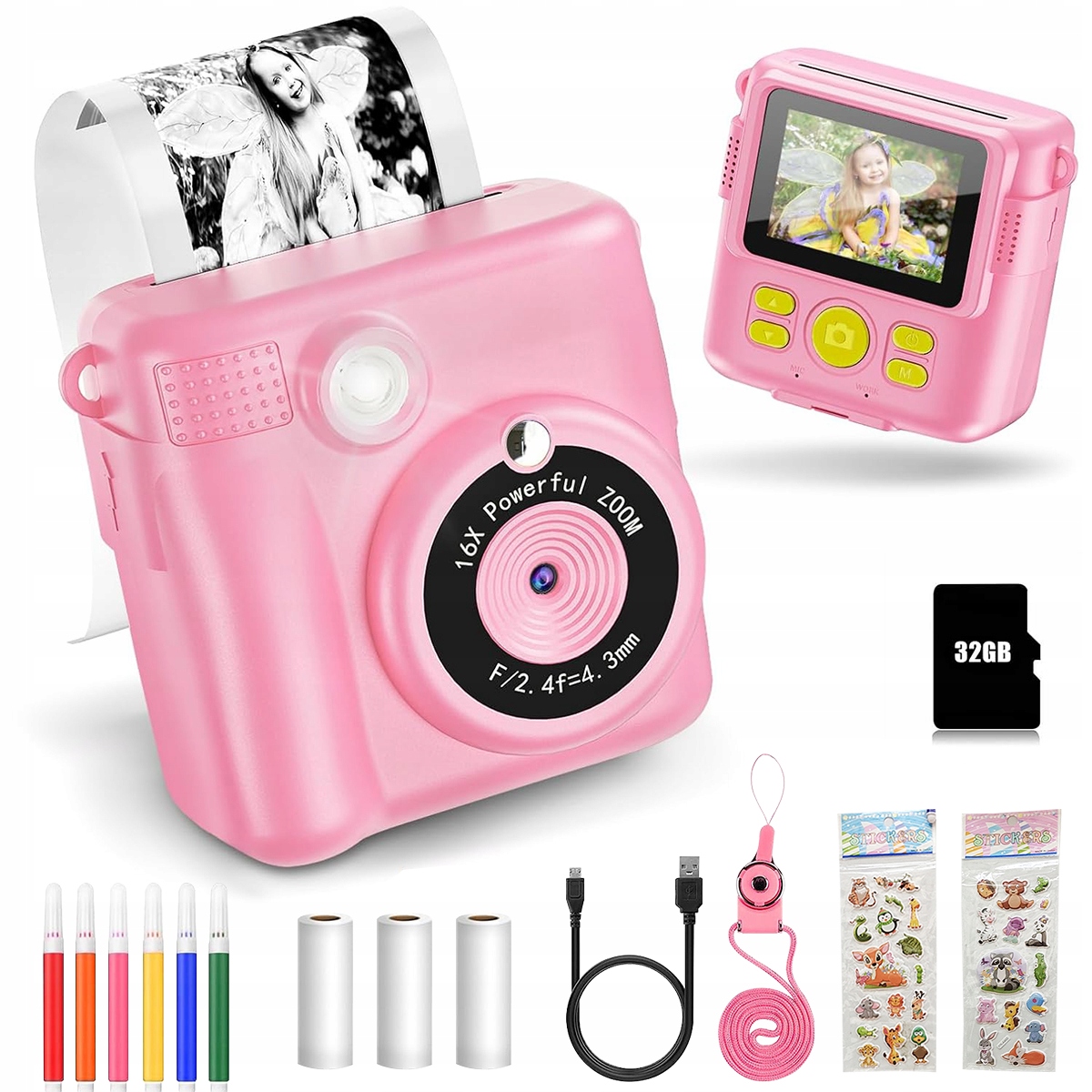 ⭐【Лучший подарок для детей】⭐Наша детская цифровая камера с мгновенной печатью — отличный выбор в качестве подарка на день рождения или праздник для детей в возрасте от 3 до 12 лет. Благодаря записи HD-видео 1080P и 16-кратному цифровому зуму дети смогут получить более крупное и четкое изображение, чтобы запечатлеть драгоценные моменты своего детства. Обязательно заранее установите прилагаемую карту емкостью 32 ГБ, которая позволит хранить сотни фотографий и видео. Камера также оснащена 14 видами сюжетных фильтров и 18 видами наклеек, что очень интересно детям при съемке фотографий или селфи.