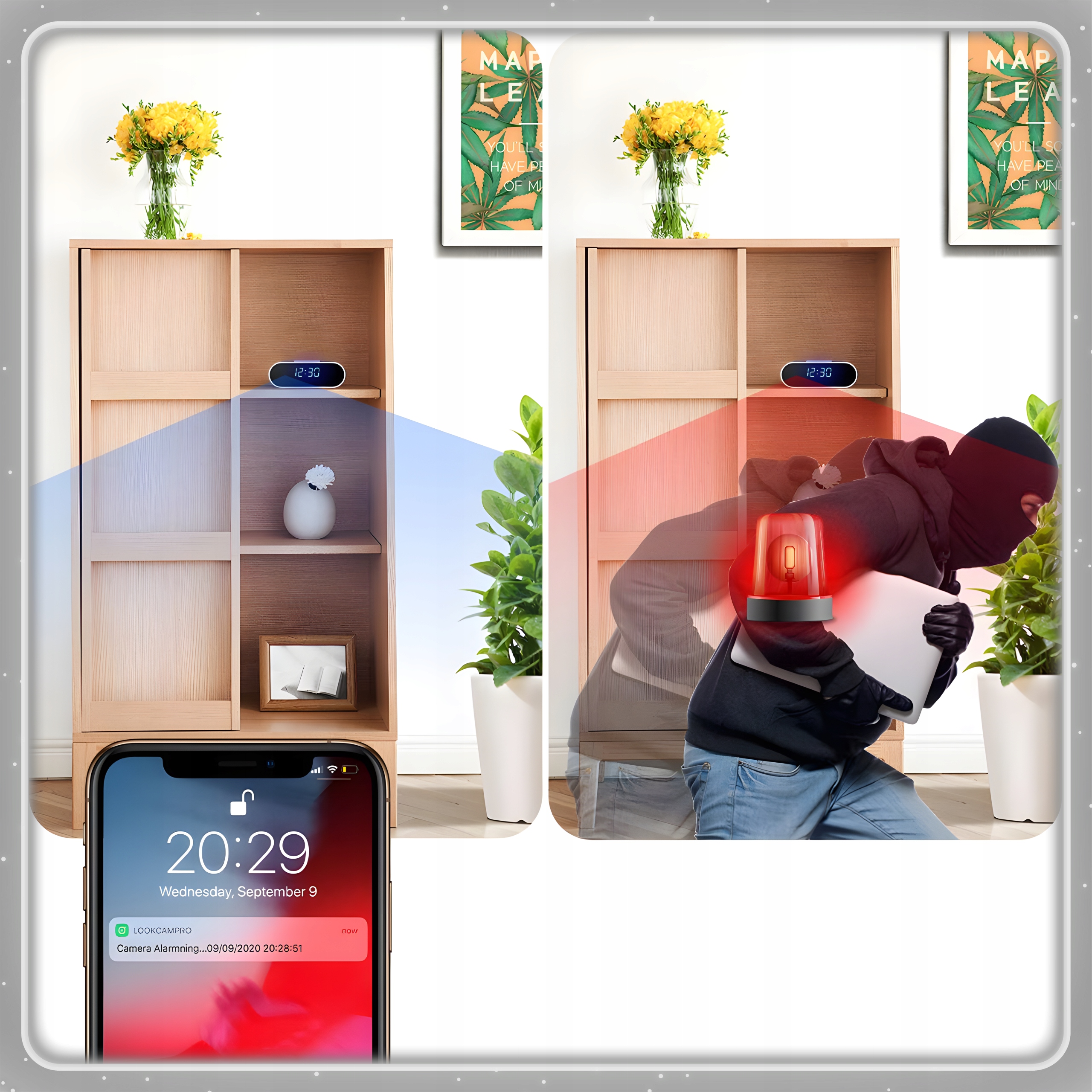 Выглядит как обычные настольные часы, поэтому не привлекает внимания. подозрения.