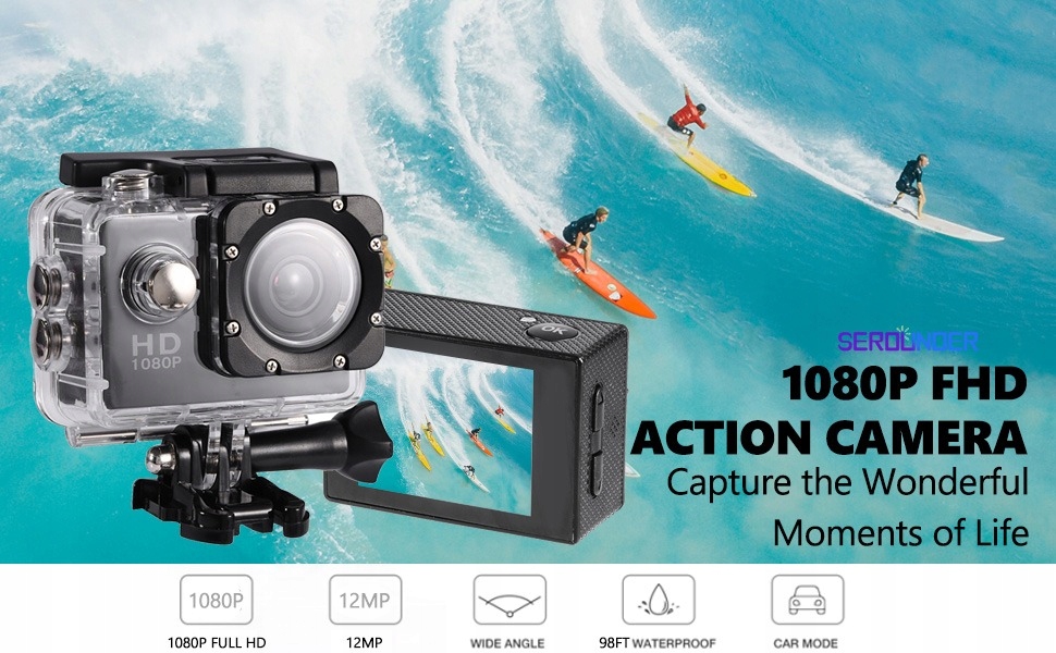 KAMERA SPORTOWA 12MP FULL HD PRO GO AKCESORIA 1080P FULL HD WODOODPORNA