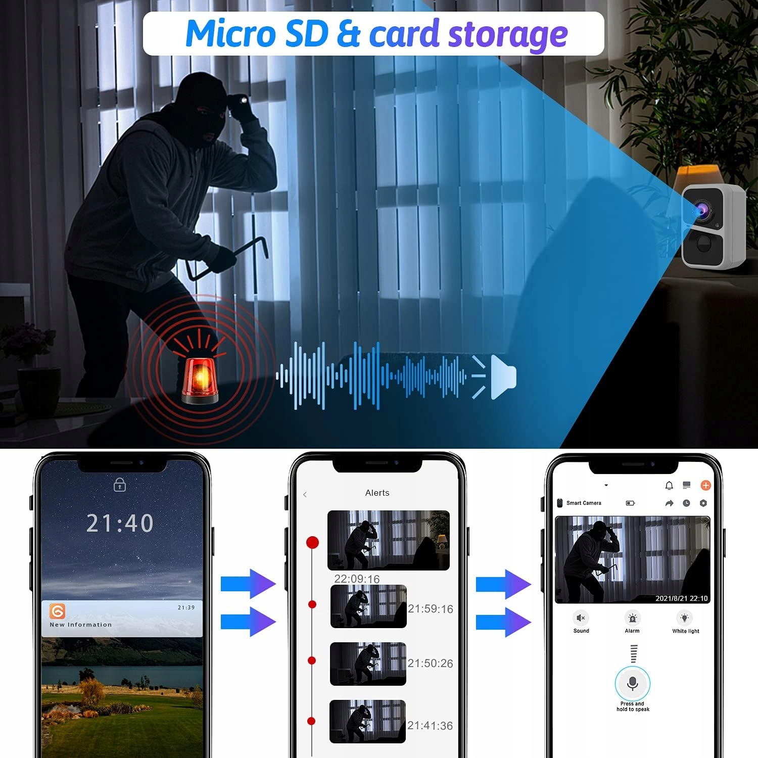 Перезаряжаемая камера наблюдения оснащена объективом 2 МП с разрешением HD 1920*1080 для более четкого изображения. Он оснащен слотом для SD-карт и поддерживает SD-карты емкостью до 128 г (SD-карта не входит в комплект поставки). Также вы можете использовать облачный сервис программы для загрузки видео или фотографий (эта функция является платной опцией).