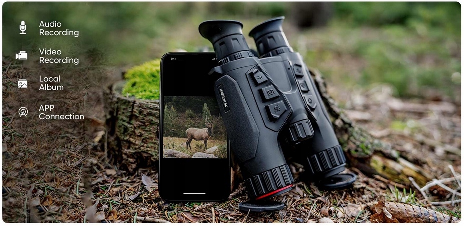 Одним из величайших преимуществ охоты является возможность мгновенно записывать увлекательные и непредвиденные приключения. С помощью HIKMICO HABROK 4K вы можете одним нажатием создавать фотографии и видео захватывающих событий и сохранять их в локальном альбоме и приложении SIGHT, чтобы не пропустить ни одного замечательного момента.