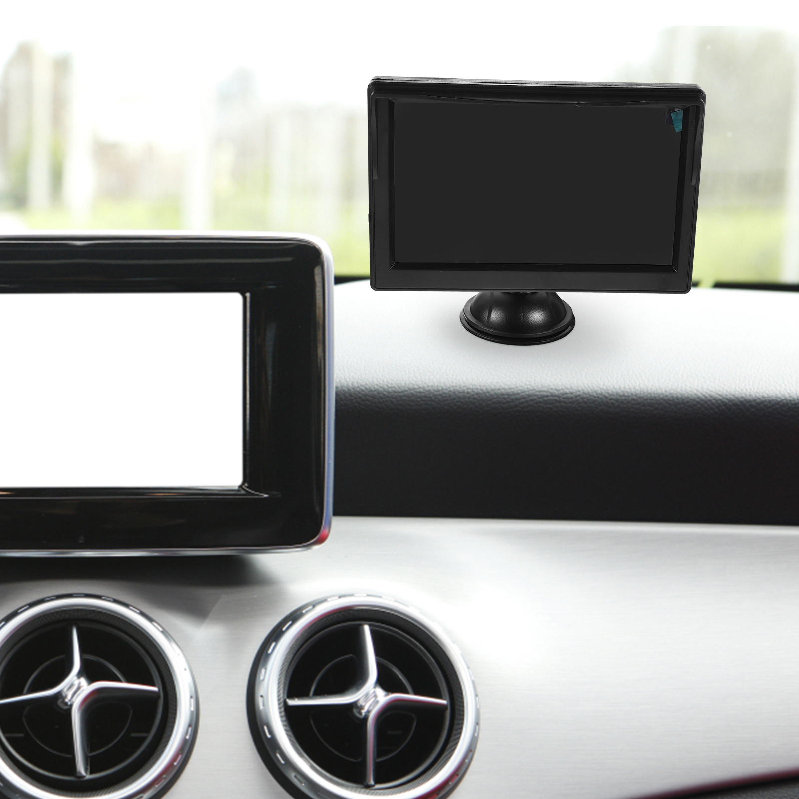 5-дюймовый цифровой цветной автомобильный монитор TFT LCD заднего вида с 2 портами видеовхода, который идеально работает с автомобильными камерами заднего вида. Монитор автоматически запустится и синхронно будет отображать видео с камеры заднего вида при движении автомобиля задним ходом; монитор закроется после поворота назад. Сцены автоматически перейдут на камеру заднего вида при движении автомобиля задним ходом, а затем вернутся к исходной сцене.
