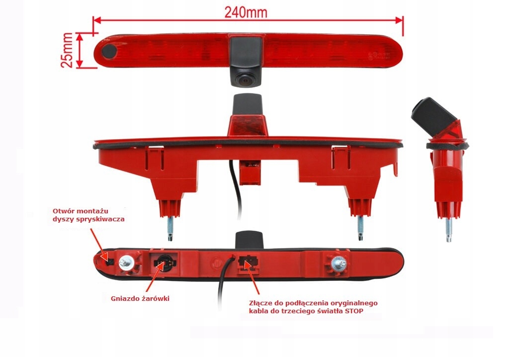 Камера предназначена для установки в верхний стоп-сигнал. В камере имеется отверстие для шайбы.