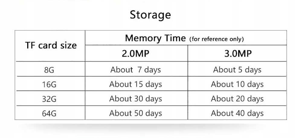 Камера поддерживает SD-карты объемом до 128 ГБ (рекомендуется использовать карт емкостью 64 ГБ – доступно в нашем предложении), чтобы вы могли записывать изображения в течение длительного времени и воспроизводить записи, например, с помощью флэш-накопителя. Устройство записывает в цикле, а это значит, что самые старые записи регулярно удаляются, когда заканчивается место на карте памяти - камера никогда не "заклинит" и у вас всегда будет доступ к записям с последние несколько дней