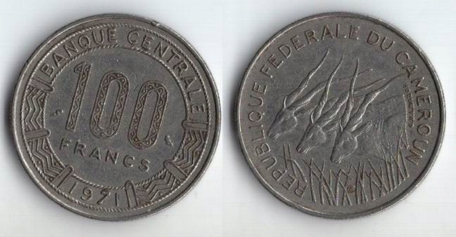 КАМЕРУН 1971 100 ФРАНЦУЗСКИХ