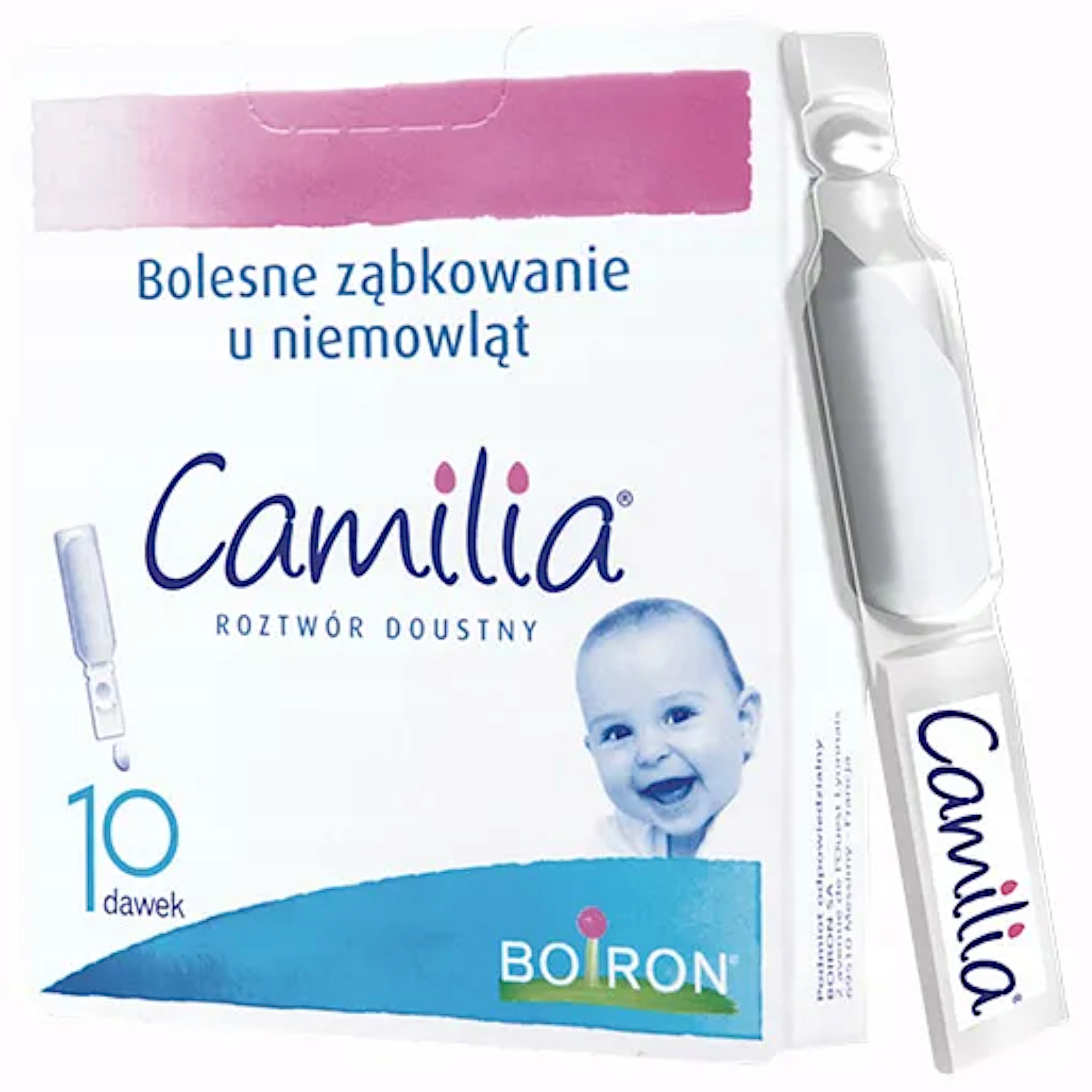 Камилия – гомеопатический лекарственный препарат с терапевтическими показаниями, предназначенный для применения у детей раннего возраста с болезненным прорезыванием зубов. Он выпускается в форме раствора для перорального применения. Он упакован в 10 одноразовых мини-дозах емкостью 1 мл каждая.