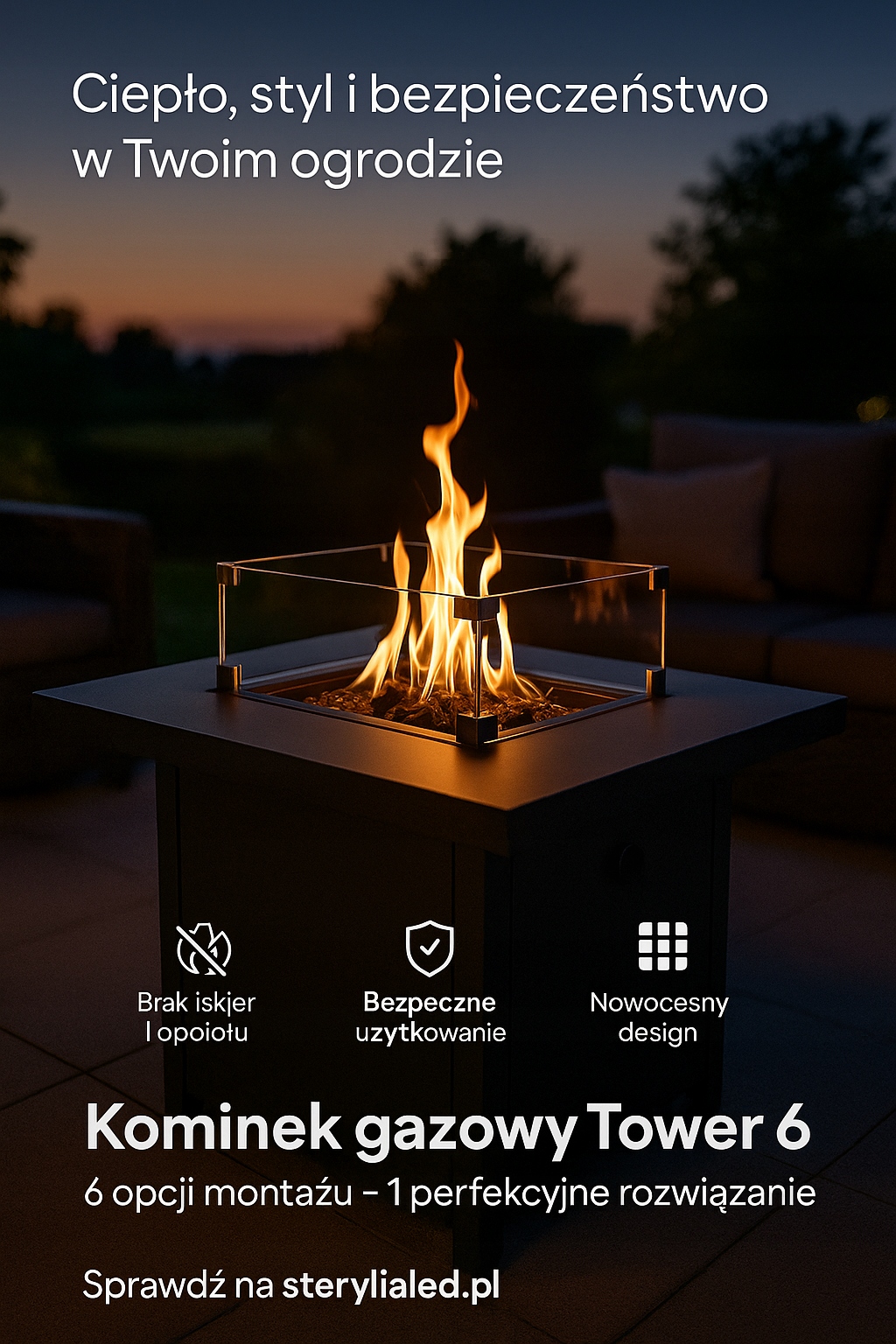 - Обеспечивает вашу безопасность : TOWER 6 является более безопасным вариантом, чем традиционные места для костра. Он предназначен для сдерживания пламени и предотвращения выхода искр и углей. Это означает, что вы можете наслаждаться теплом и атмосферой огня, не беспокоясь о риске возгорания. Датчик перекрывает подачу газа в случае незапланированного тушения пожара.