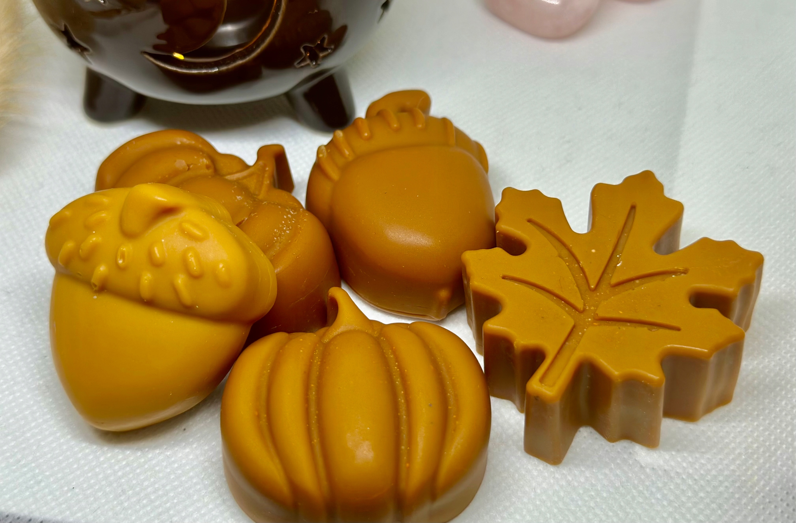 Воски выбираются случайным образом, но каждый из них придает неповторимый аромат, который наполнит ваш дом ароматом. уютный, осенний аромат.